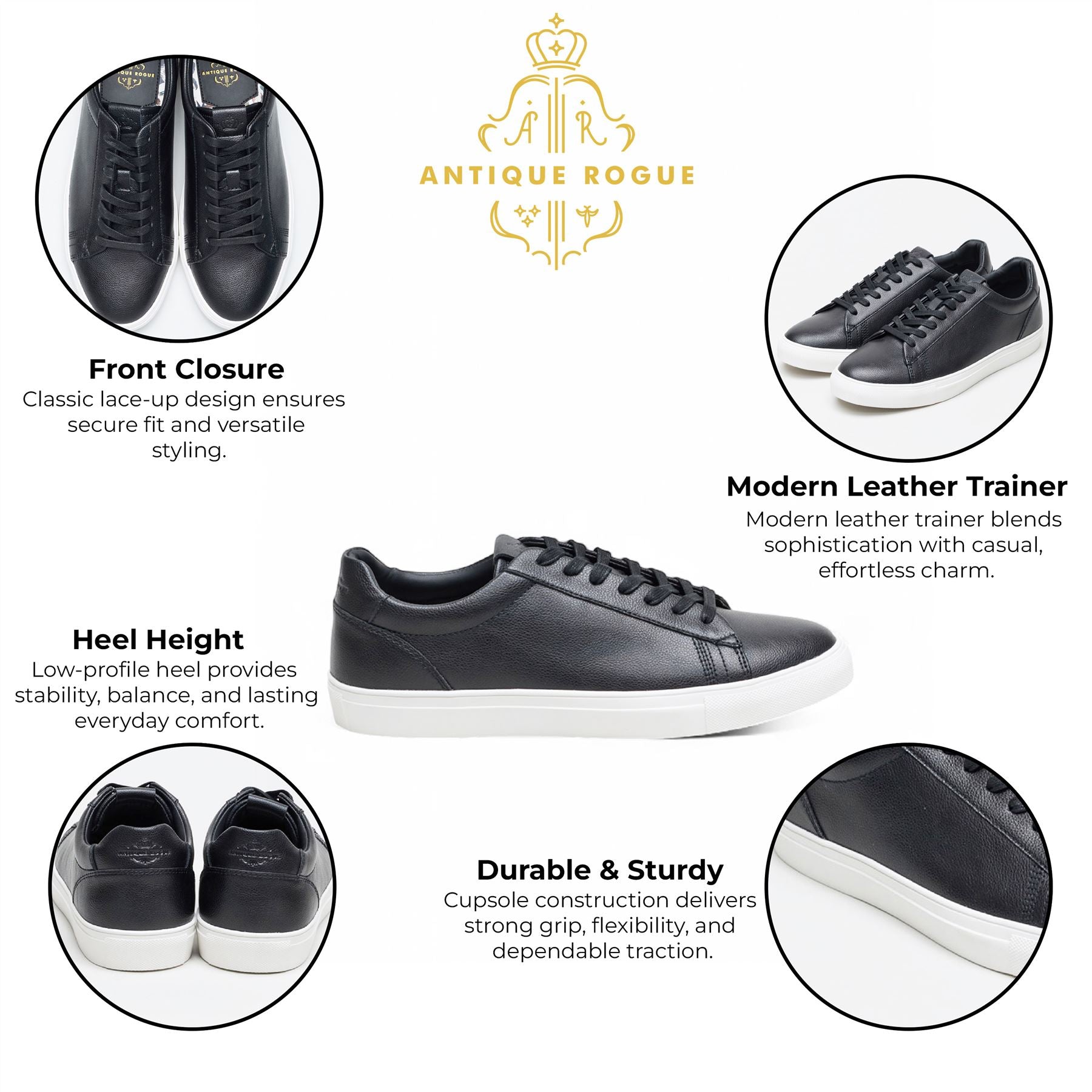 Antique Rogue Men’s Black Leather Trainer Sneaker Shoes - Gibbs
