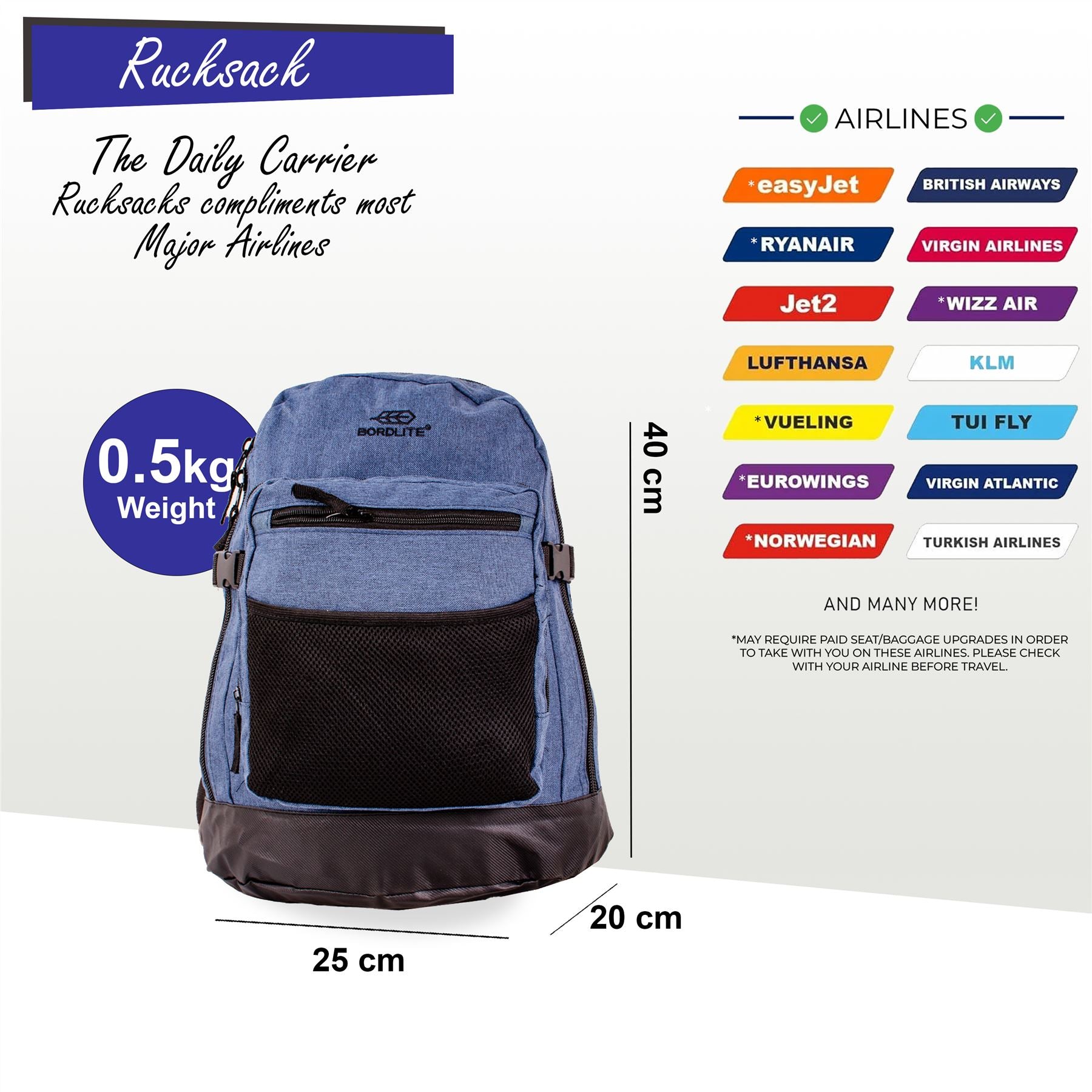 Backpack Rucksack 40x 20 x25cm Underseat Travel Cabin Bag for Ryanair, Easy Jet