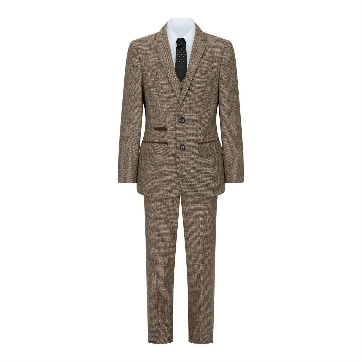 Boys 3 Piece Brown Tweed Check Vintage Retro Suit