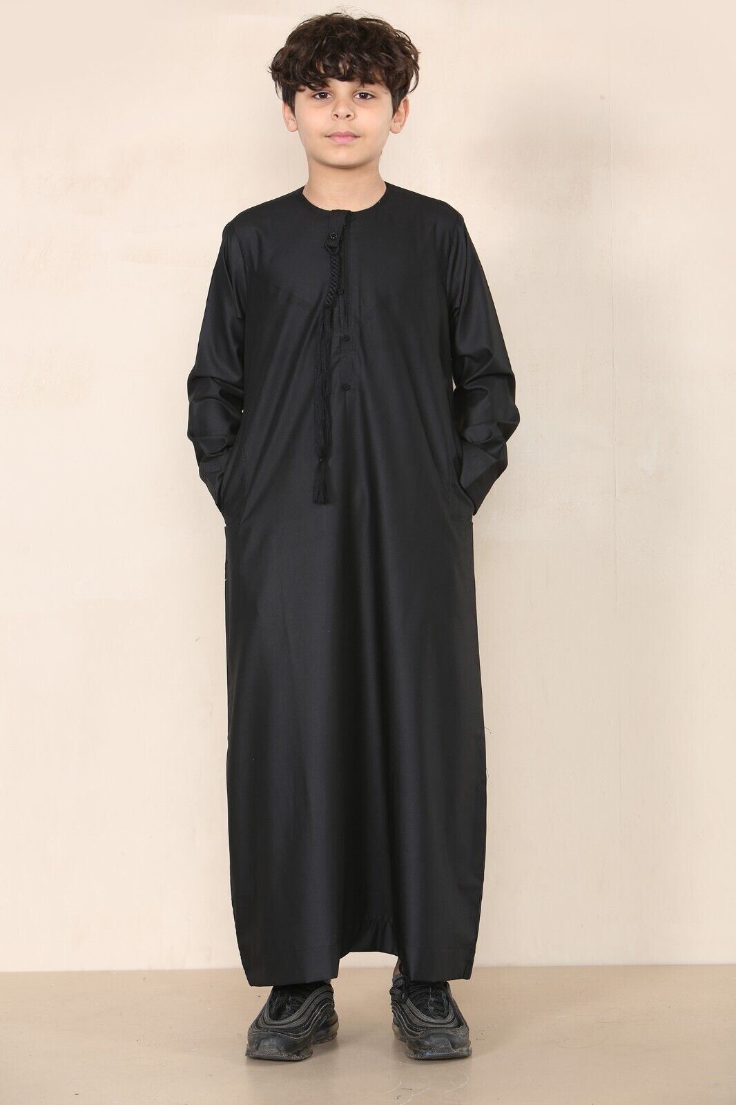 Boy's Kids Black Thobe Emirati Jubba Islamic Clothing Kaftan Eid String Tassel