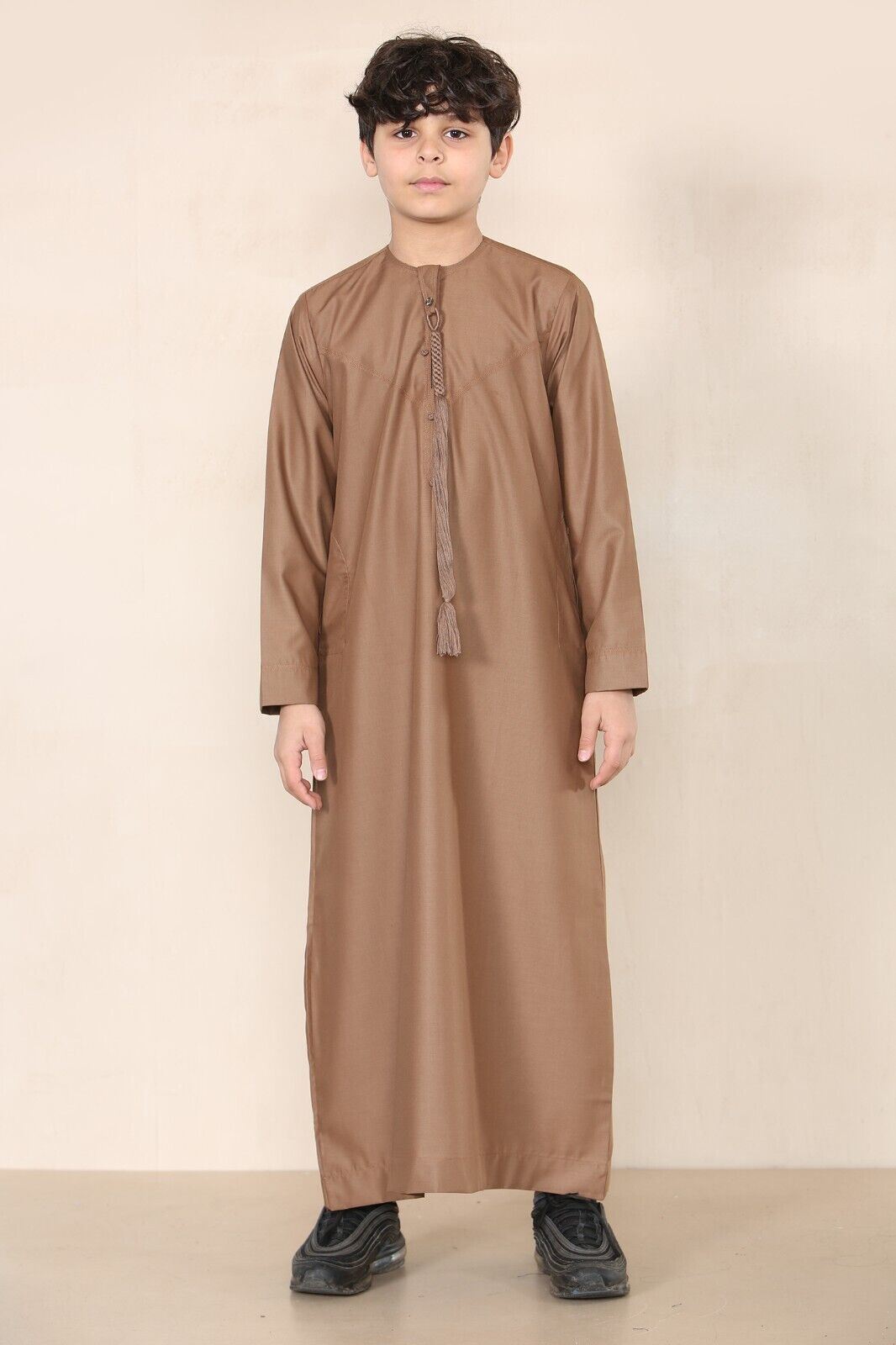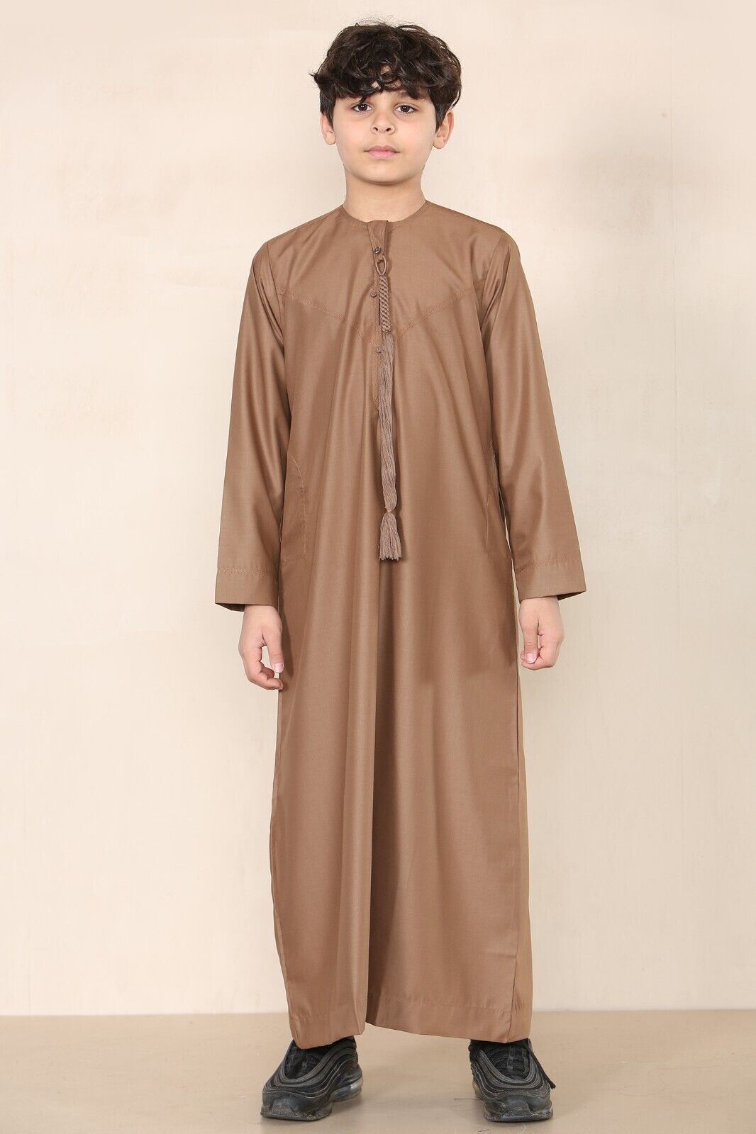 Boy's Kids Brown Thobe Emirati Jubba Islamic Clothing Kaftan Eid String Tassel