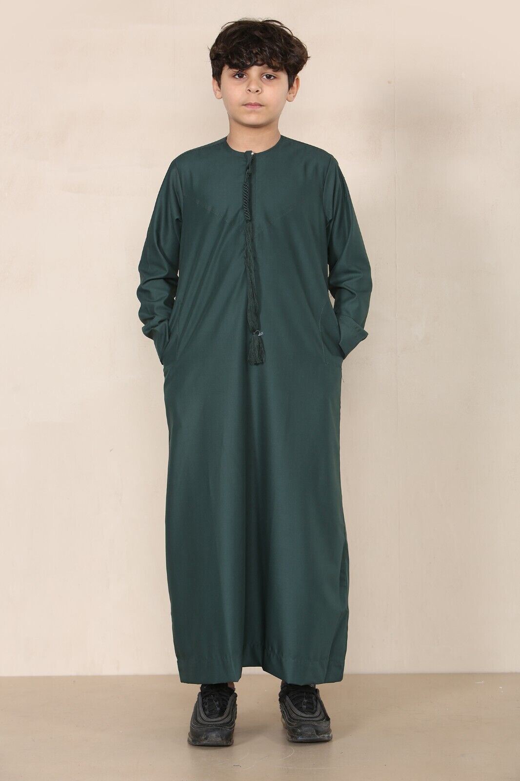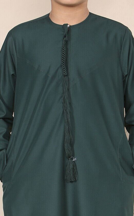 Boy's Kids Olive Green Thobe Emirati Jubba Islamic Clothing Kaftan Eid String Tassel