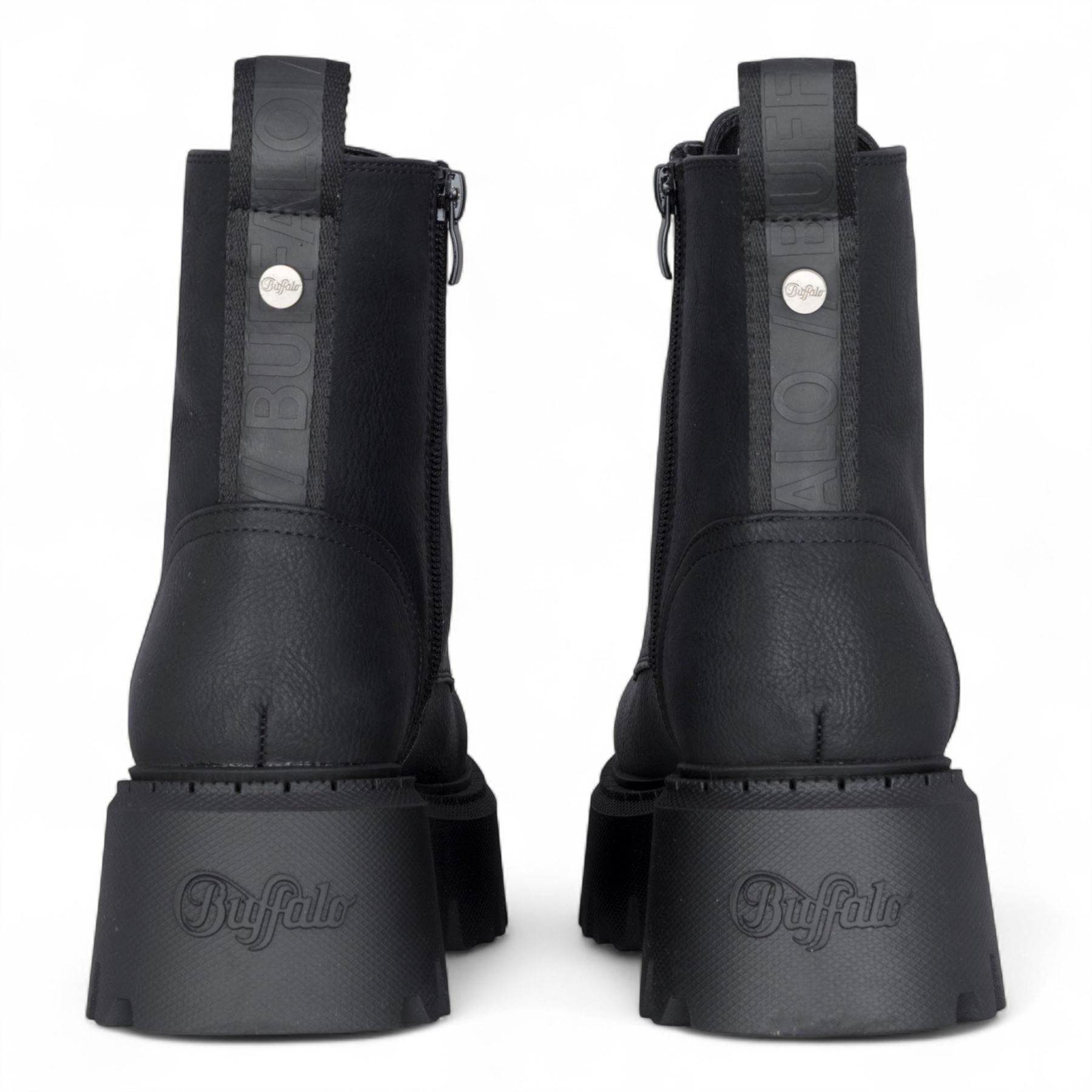 Buffalo Womens Black Chunky Platform Warm High Ankle Combat Boots - ASPEN-LACE-UP