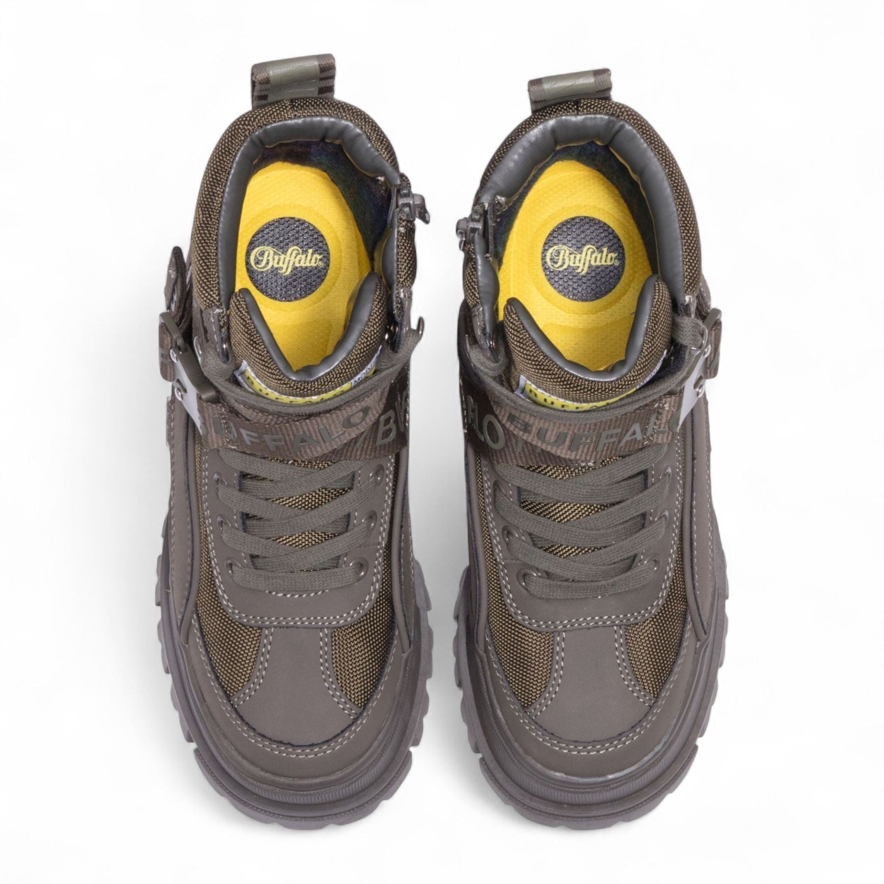 Buffalo Womens Khaki Chunky Platform High Ankle Combat Boots - ASPHA-COM1