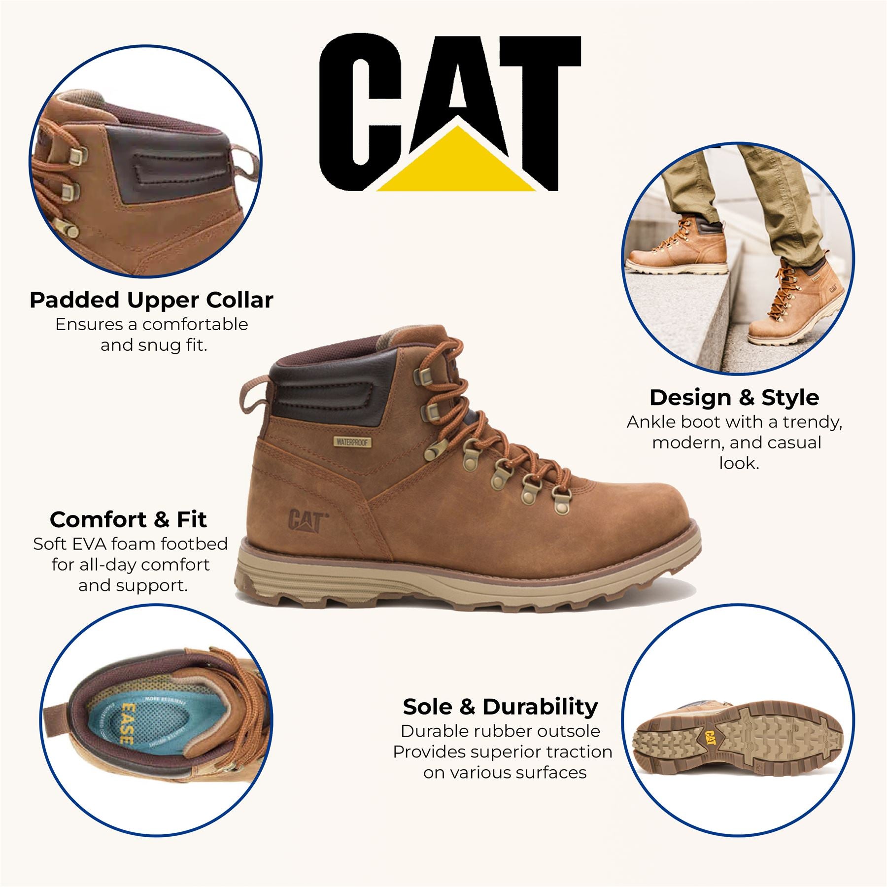 Caterpillar Mens Sire Waterproof Brown Sugar Leather Cat Work Boots