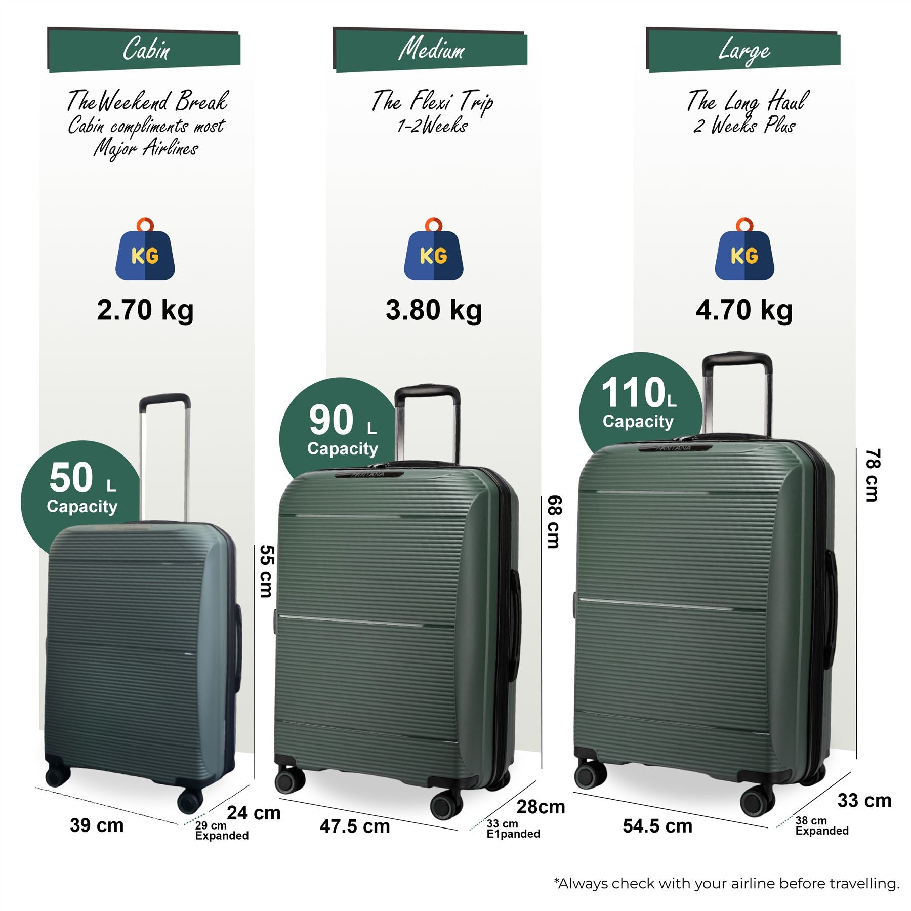 Expandable Hard Shell PP 8 Wheel Luggage Travel Cabin Holiday Bags Suitcase Set