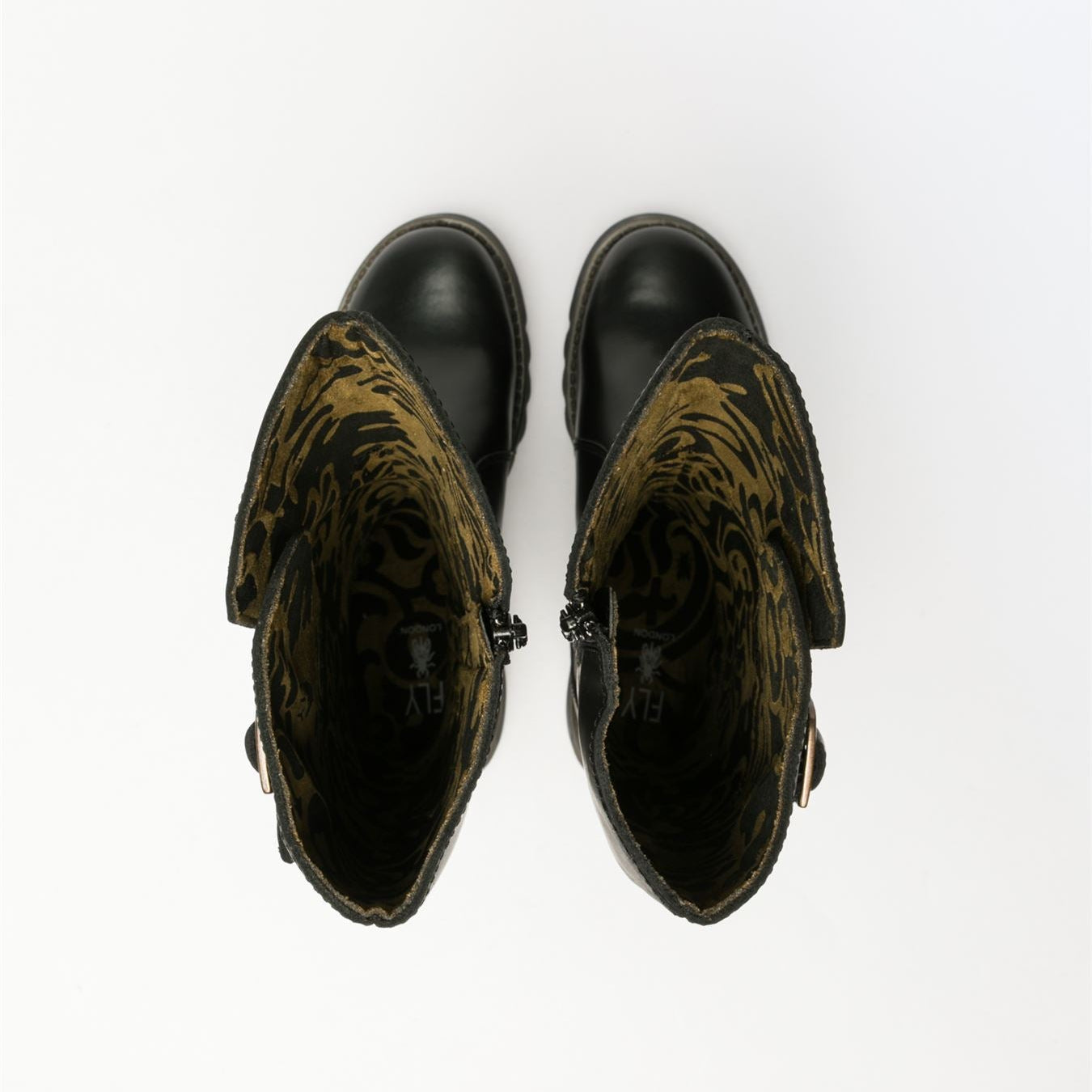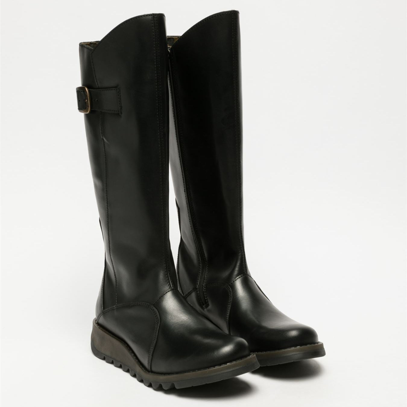Fly London Womens Black Mol 2 Leather Wedge Heel Knee High Zip Up Boots