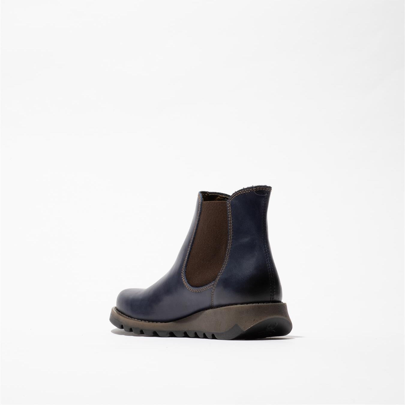Fly London Womens Blue SALV Chelsea Leather Ankle Casual Wedge Heel Boots