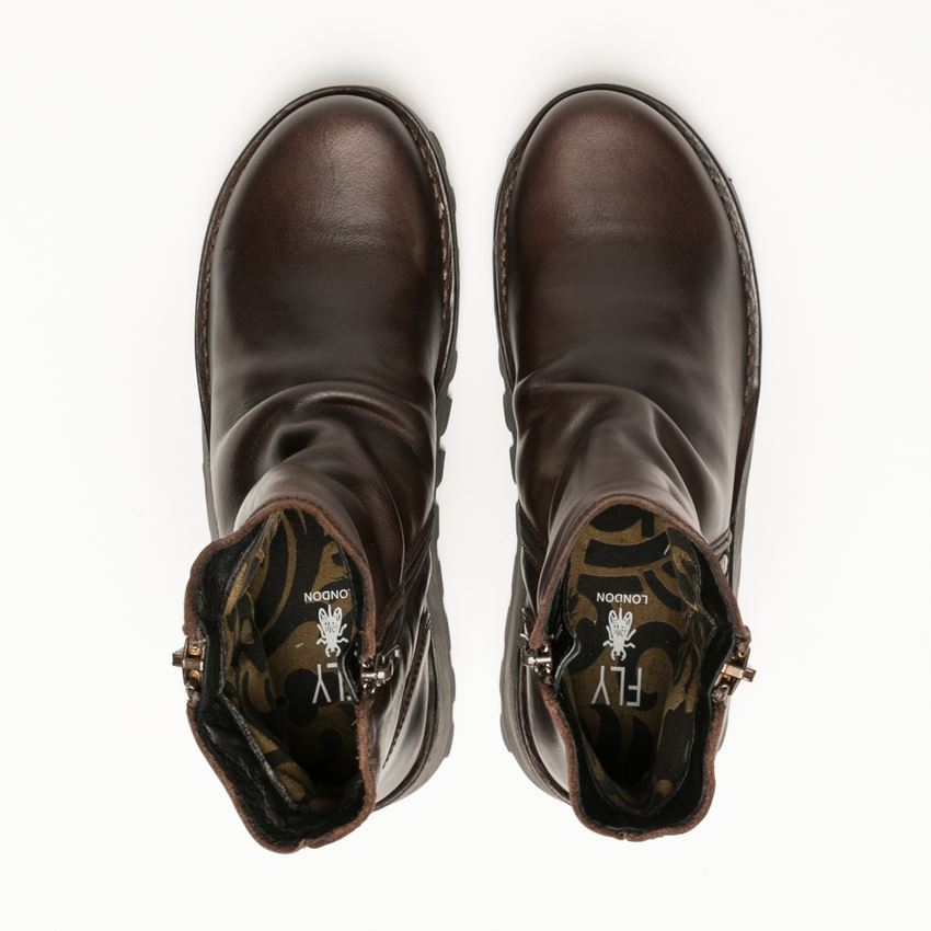 Fly London Womens Brown Mon944 Leather Wedge Heel Ankle Zip Up Chelsea Boots
