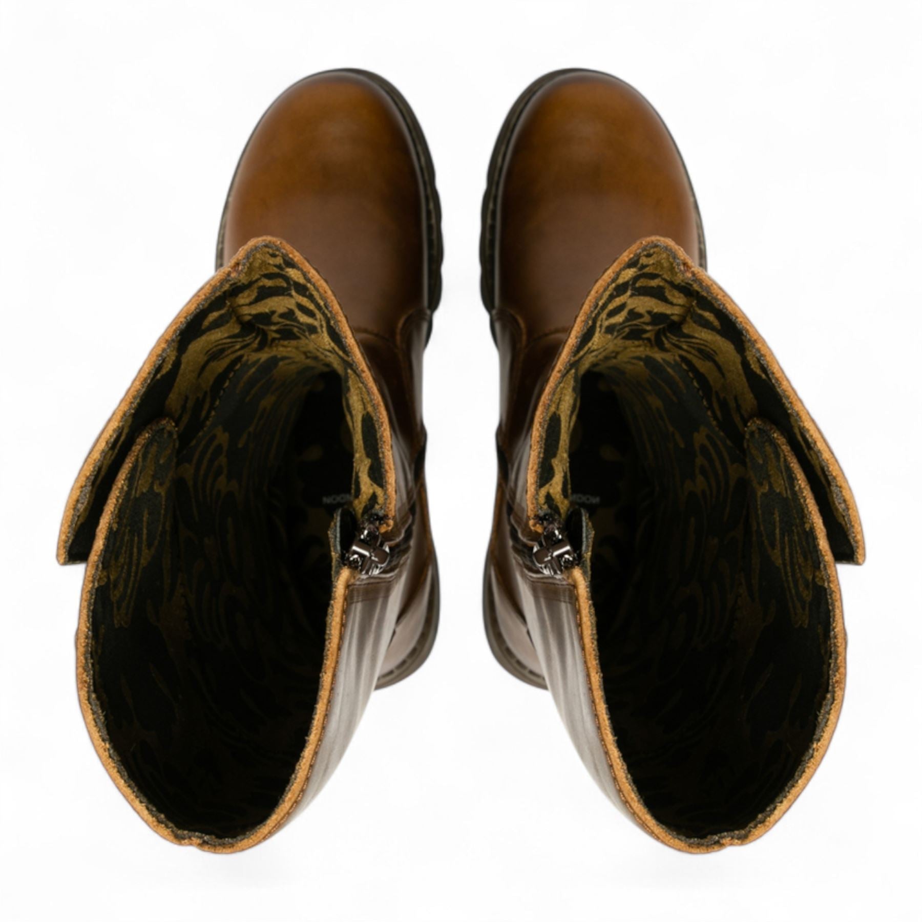 Fly London Womens Camel Brown MOL 2 Leather Wedge Heel Knee High Zip Up Boots