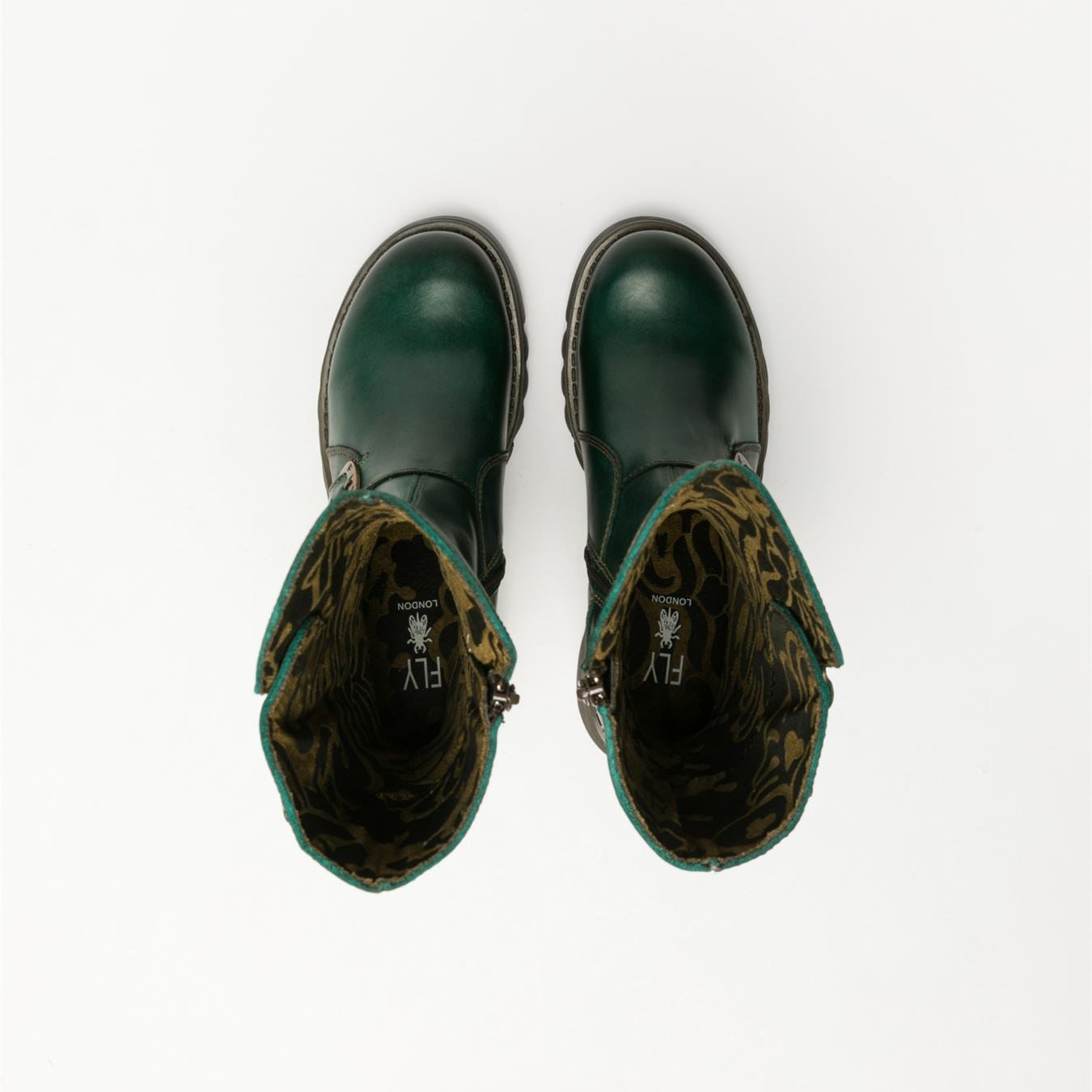 Fly London Womens Green Mes 2 Wedge Heel Buckle Mid-Calf Leather Zip Platform Boots