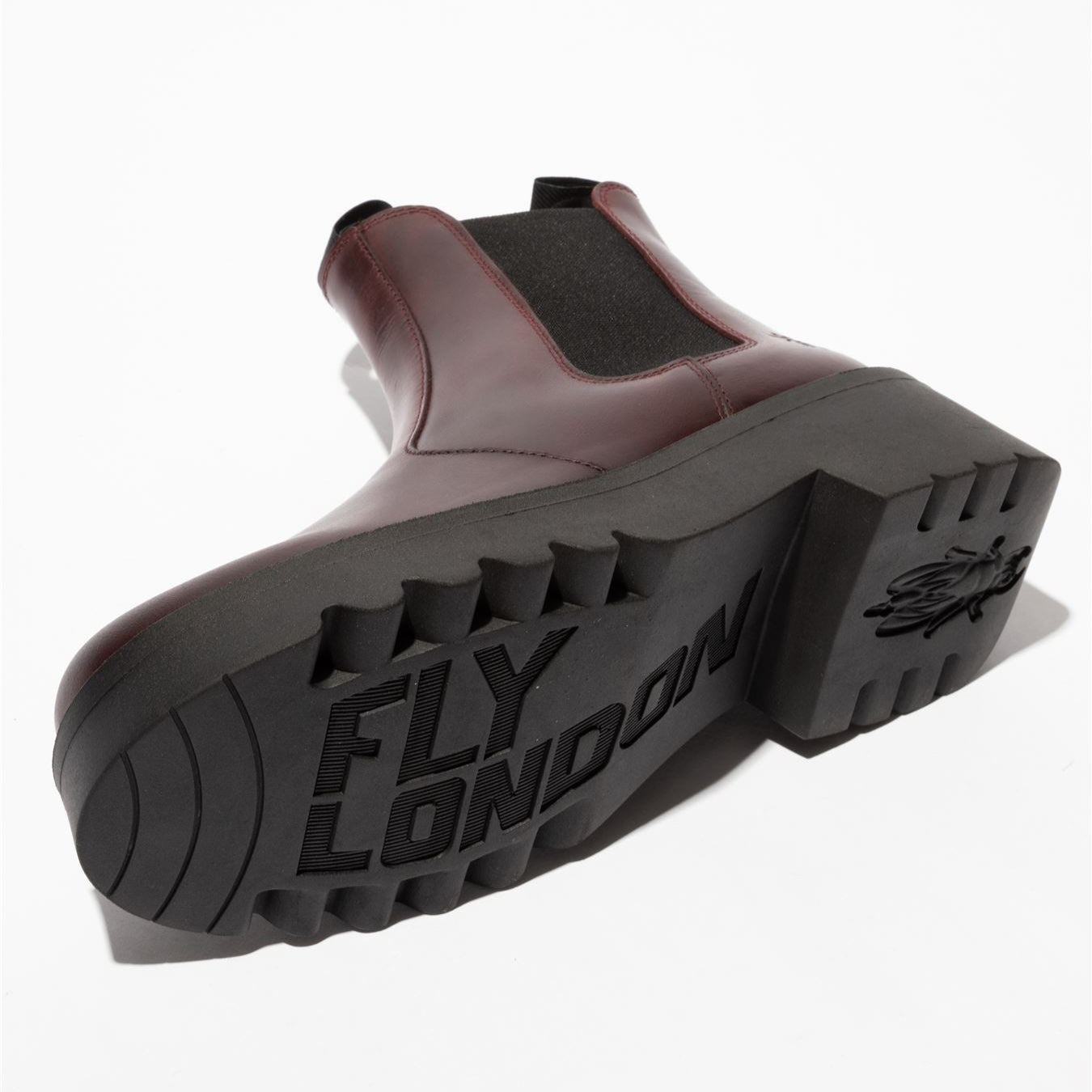 Fly London Womens Wine Medi789 Wedged Chelsea Ankle Leather Platform Boots