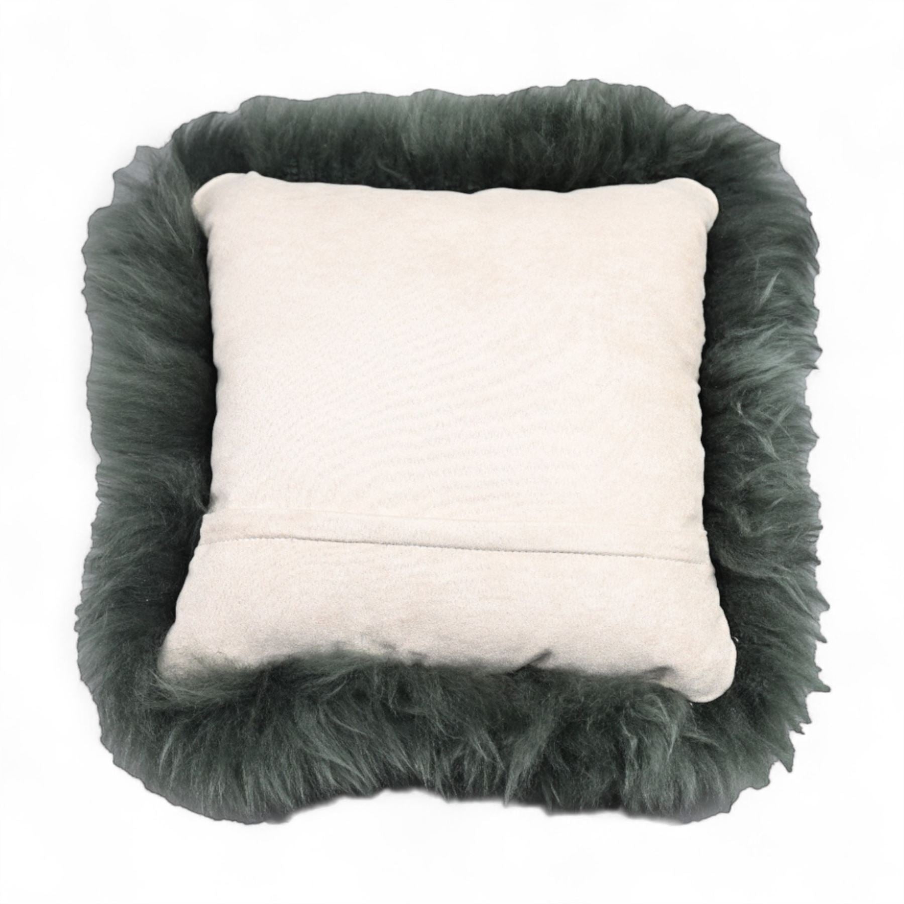 Genuine Sheepskin Thyme Green 40x40cm Real Wool Single Sided Cushion