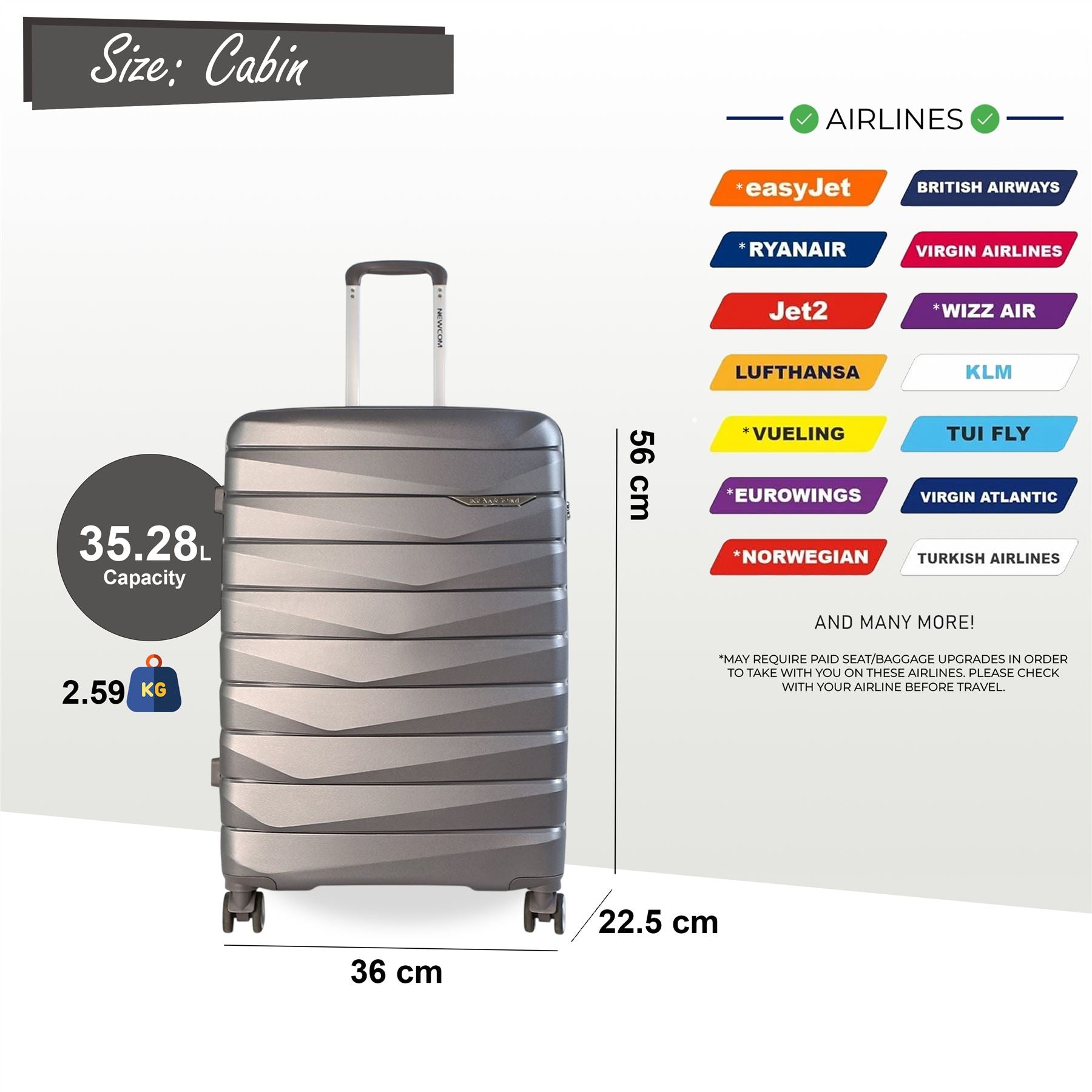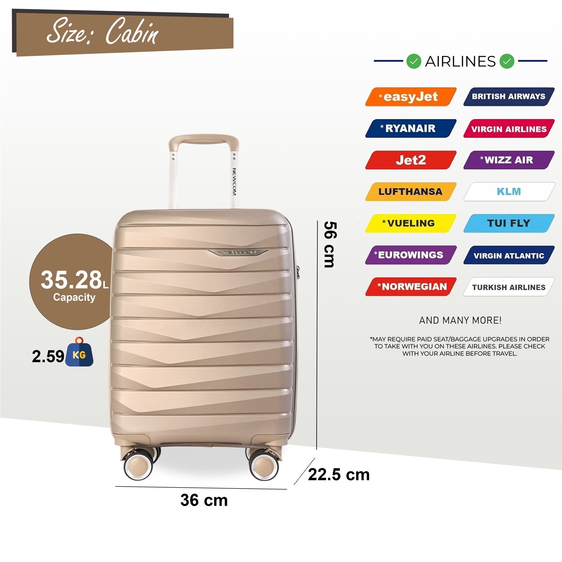 Hard Shell Cabin 36 x 22.5 x 56 cm PP Luggage Suitcase Suitable for Easyjet, Ryanair