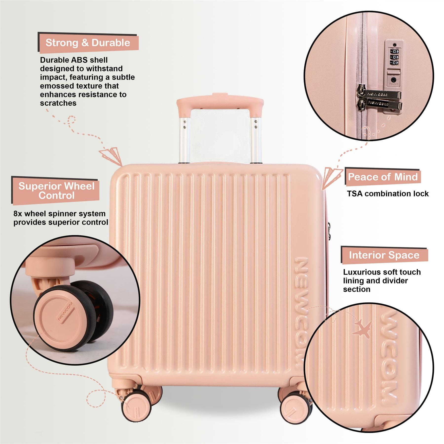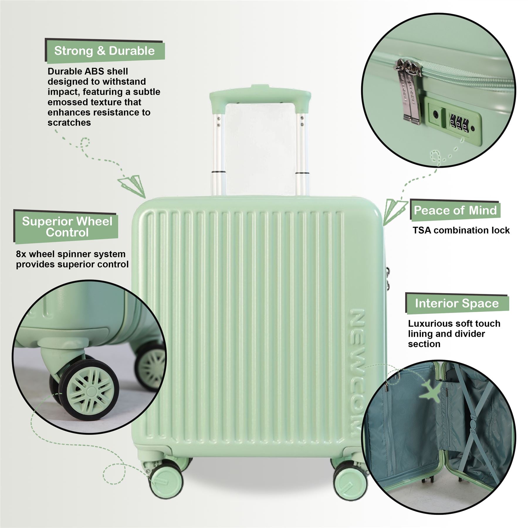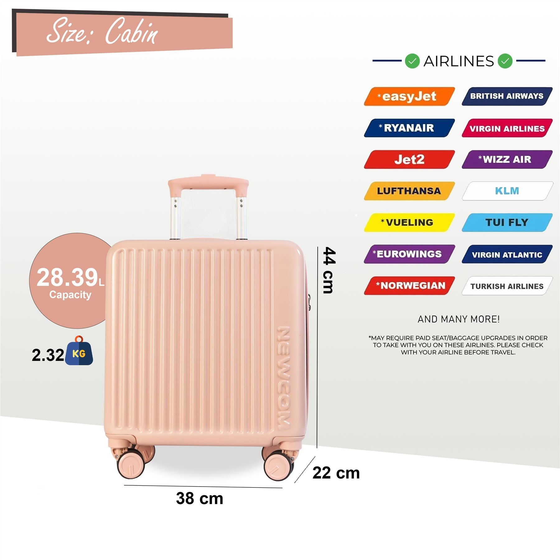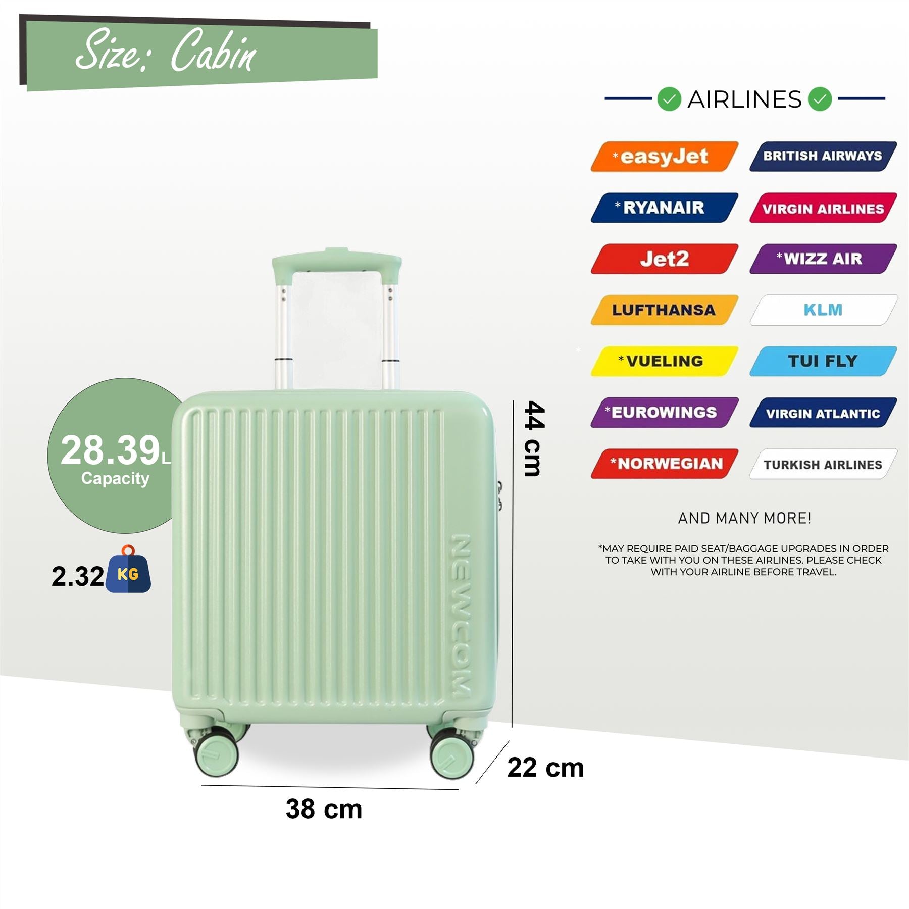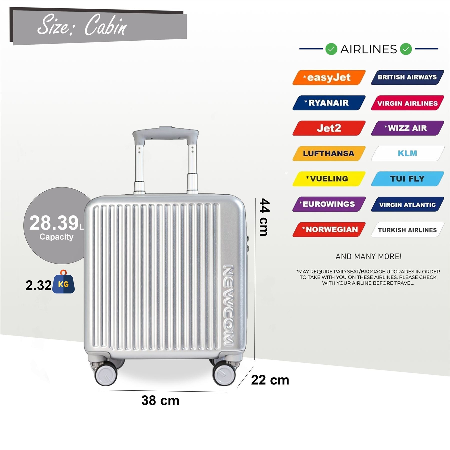 Hard Shell Cabin 44 x 22 x 38 cm TSA Secure Luggage Suitcase Suitable for Easyjet, Ryanair