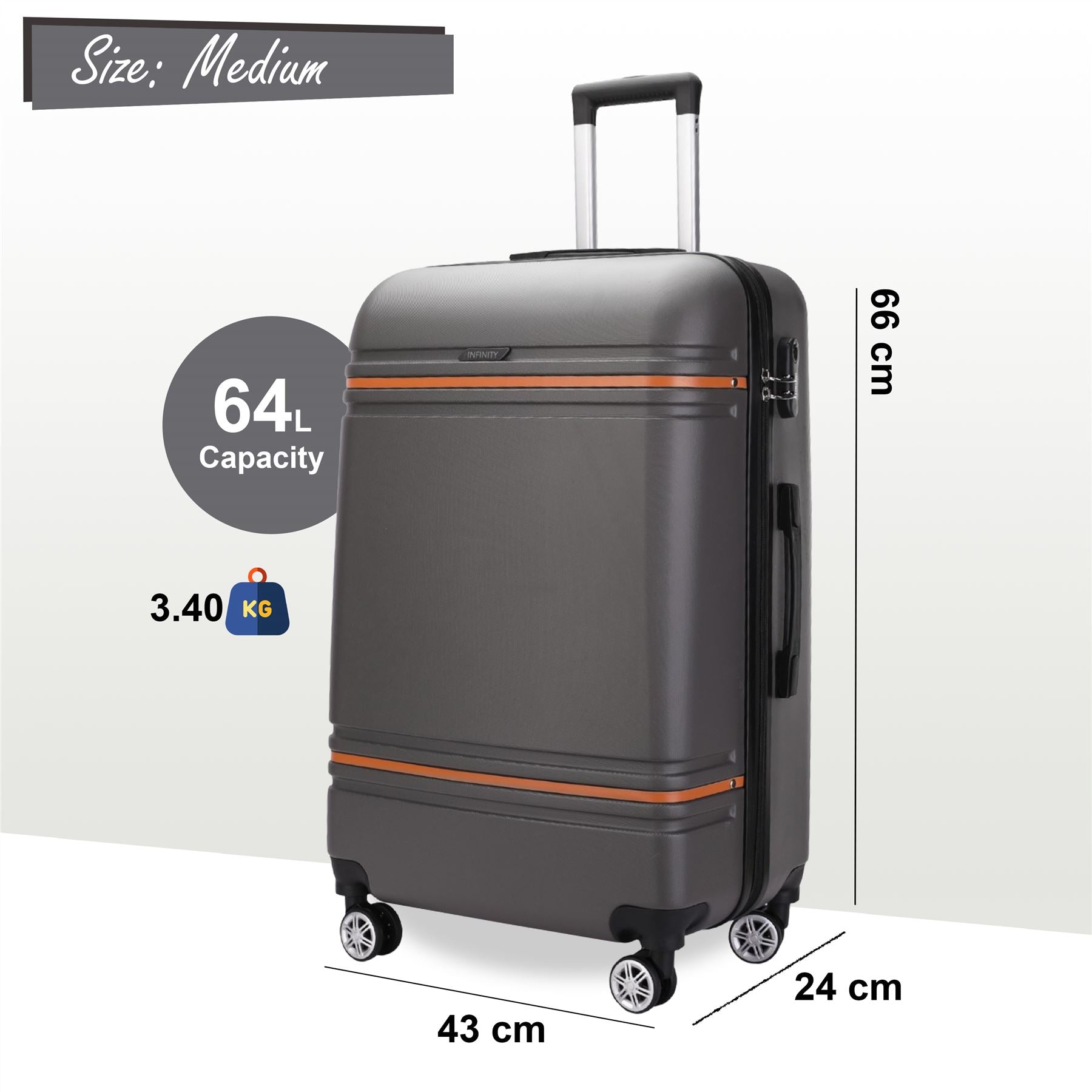 The timeless design ensures elegance while making your luggage easy to spot. Whether traveling light with the cabin size or packing for a long trip with the medium and large options, this set is tailored to suit all your travel needs.