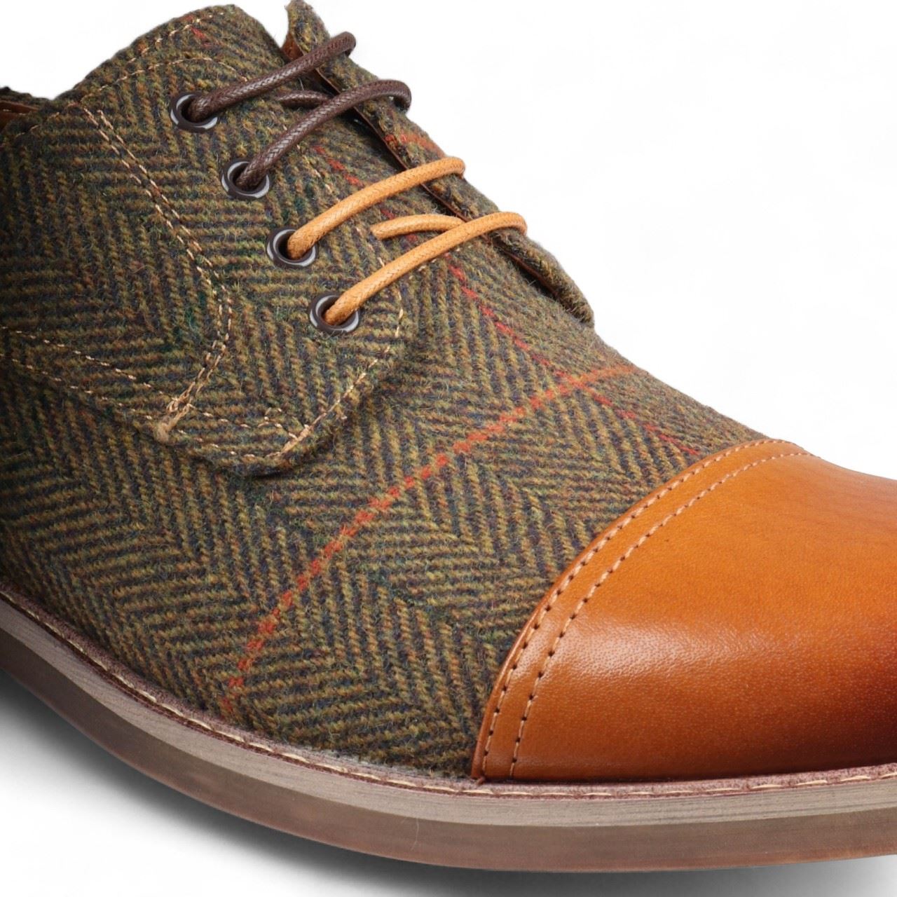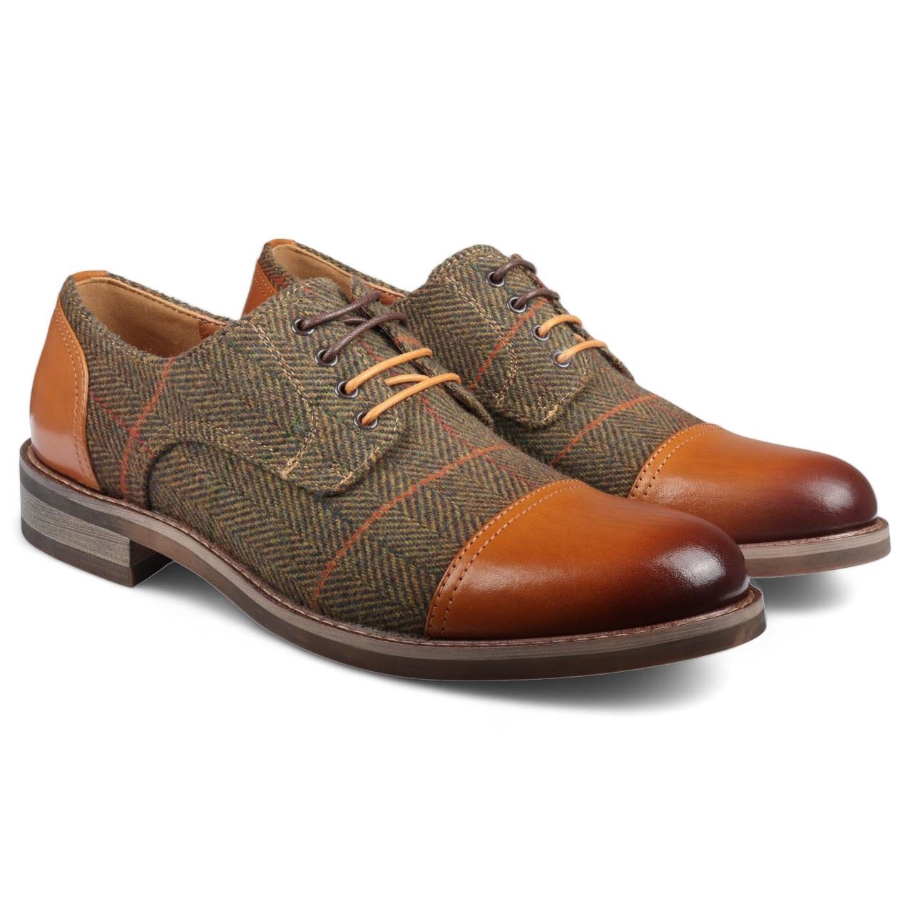 Justin Reess Men's Brown Leather Tweed Oxford Shoes - Theon