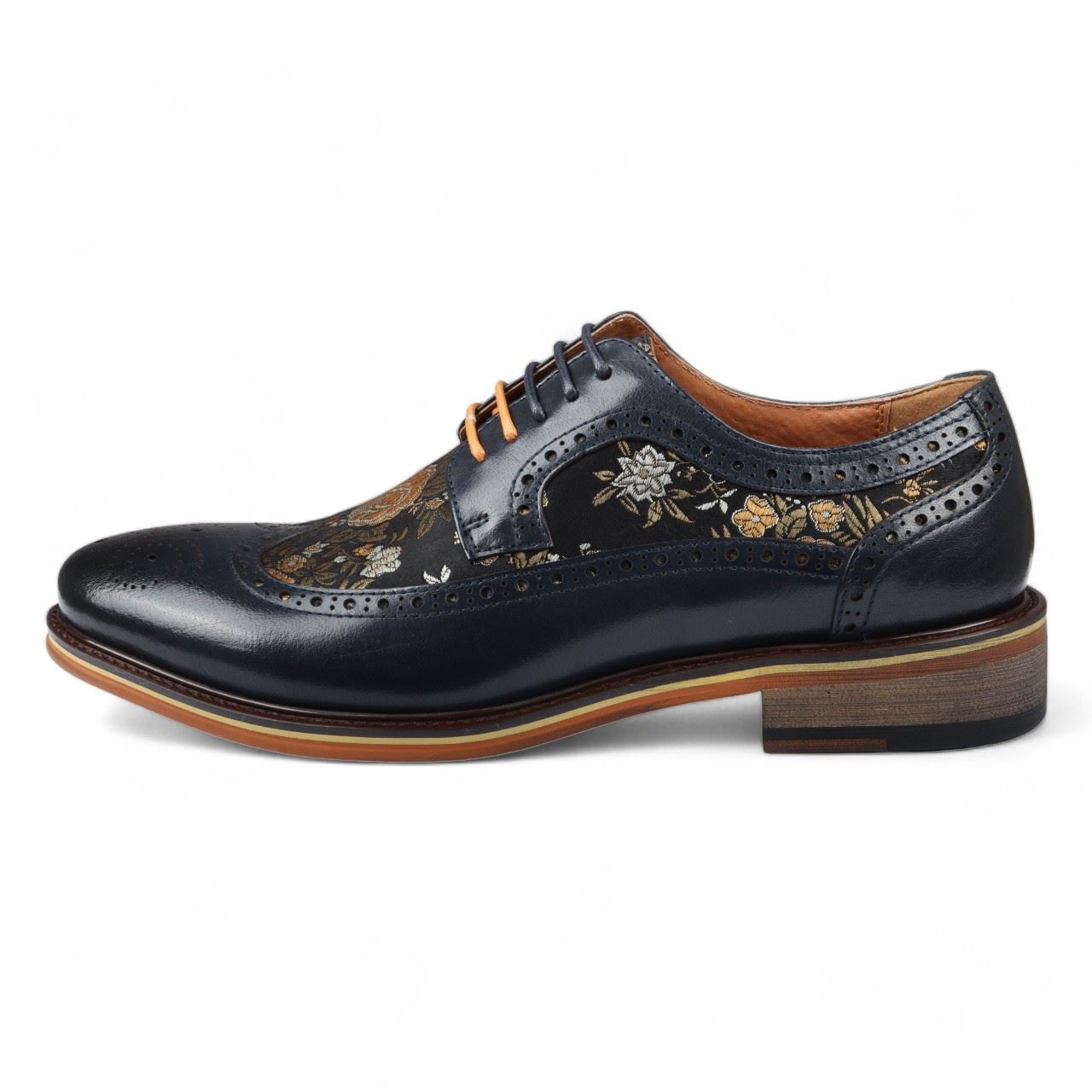 Justin Reess Men's Navy Blue Leather Floral Print Brogue Dress Shoes - Ross