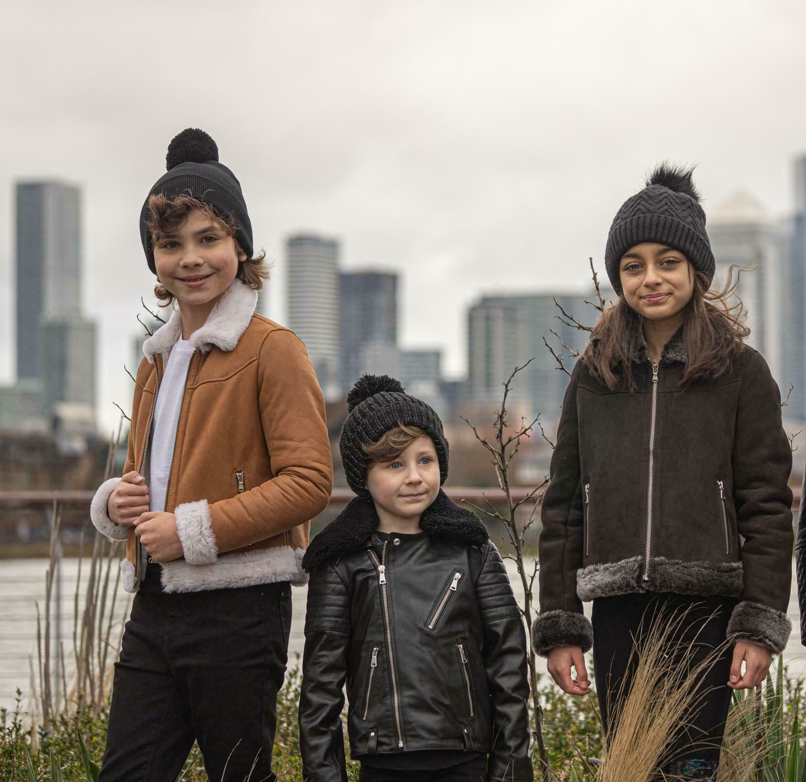 Kids Boys 100% Leather Detachable Collar Biker Jacket