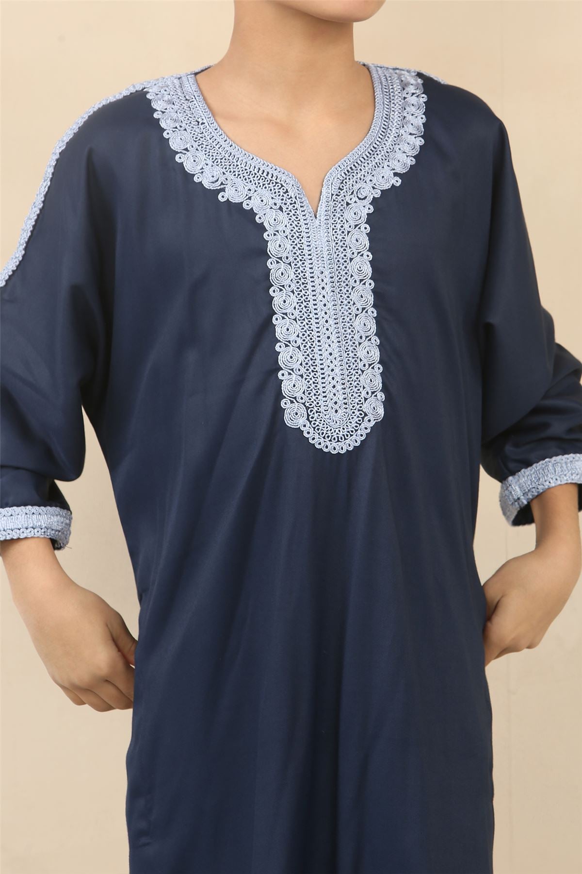 Kid's Boys Blue Moroccan Thobe Jubba Robe Eid Djellaba Gandoura