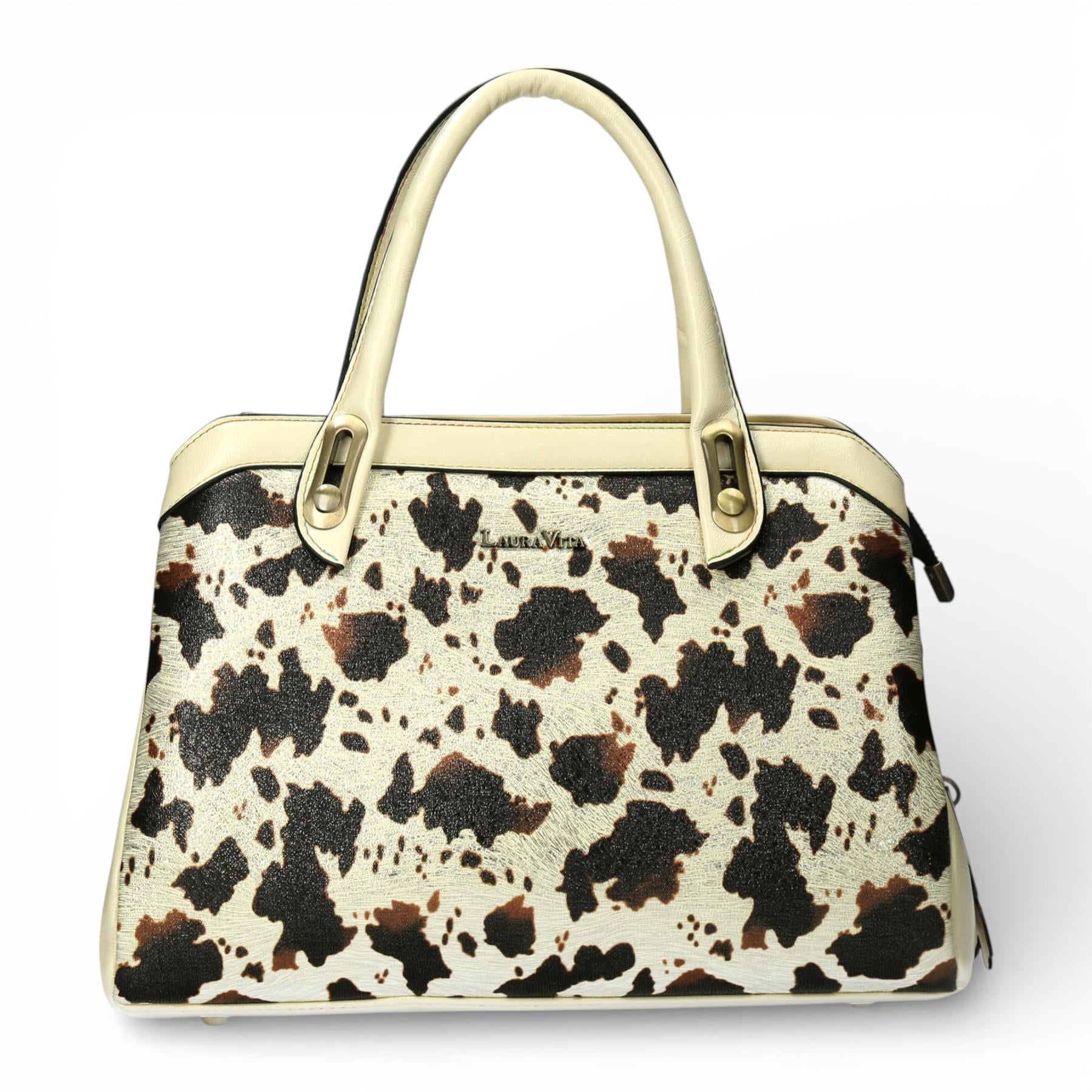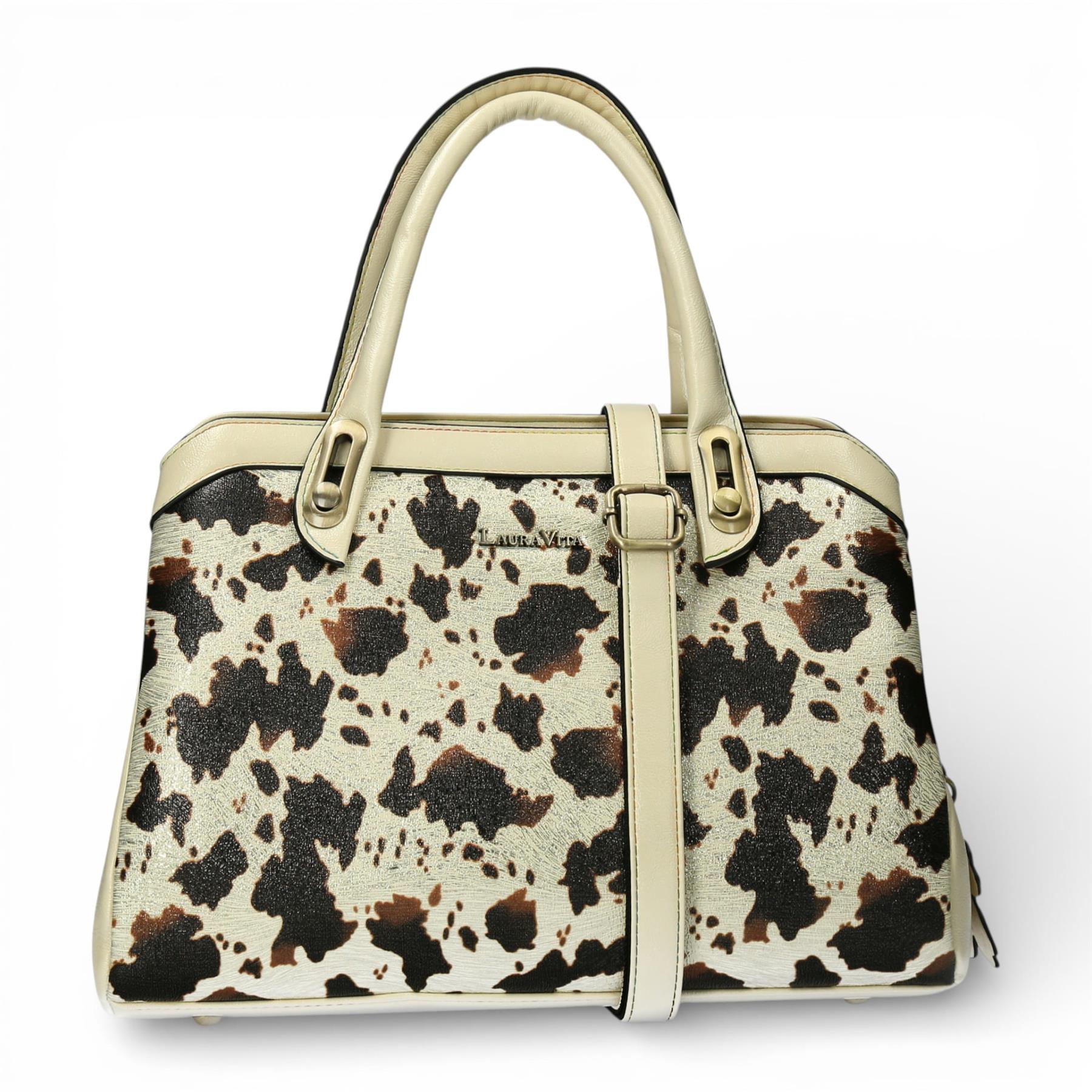 Laura Vita Aramis-08 Womens Tan Floral Print Adjustable Straps Shoulder Tote Handbag