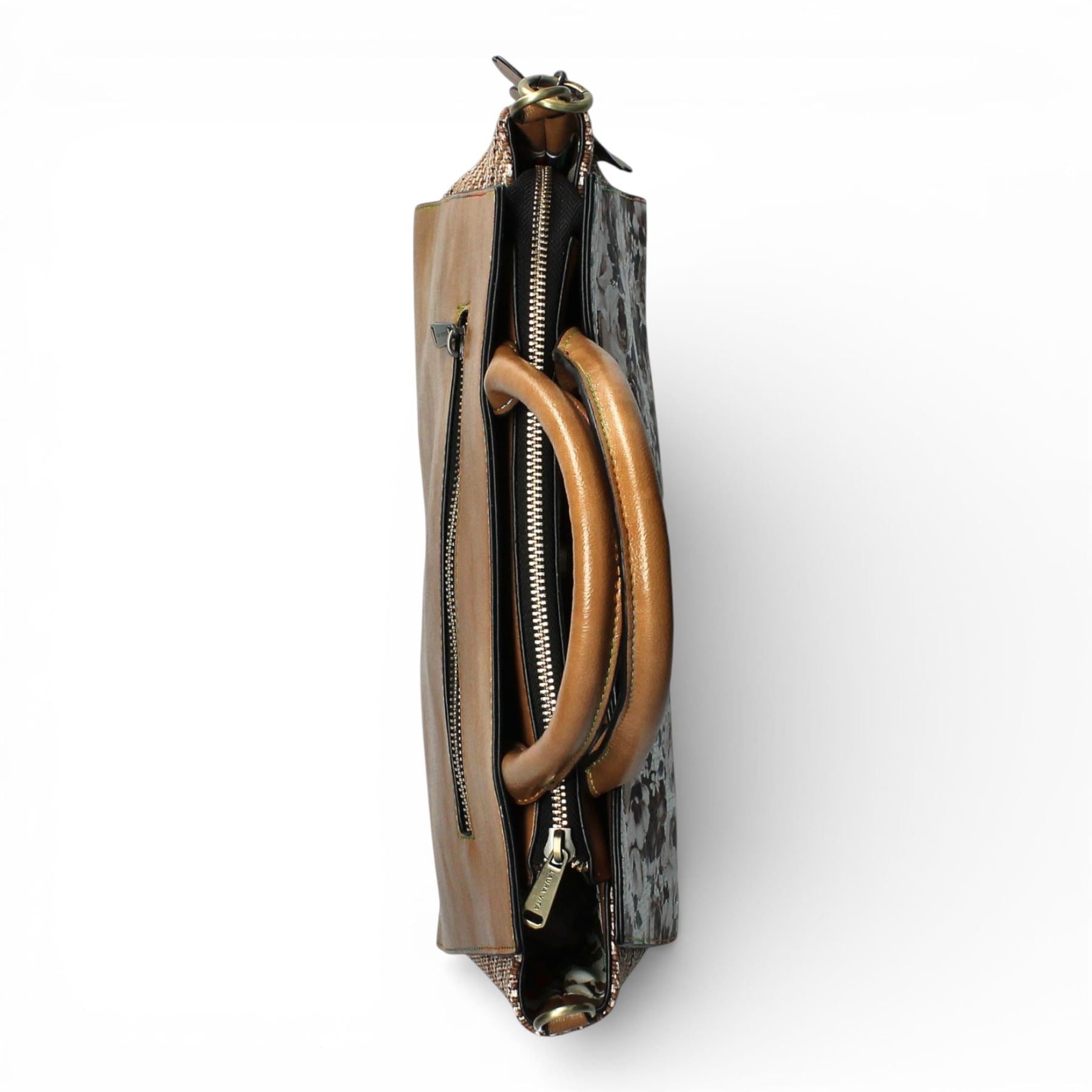 Laura Vita Ayna-02 Womens Tan Floral Print Adjustable Straps Shoulder Tote Handbag