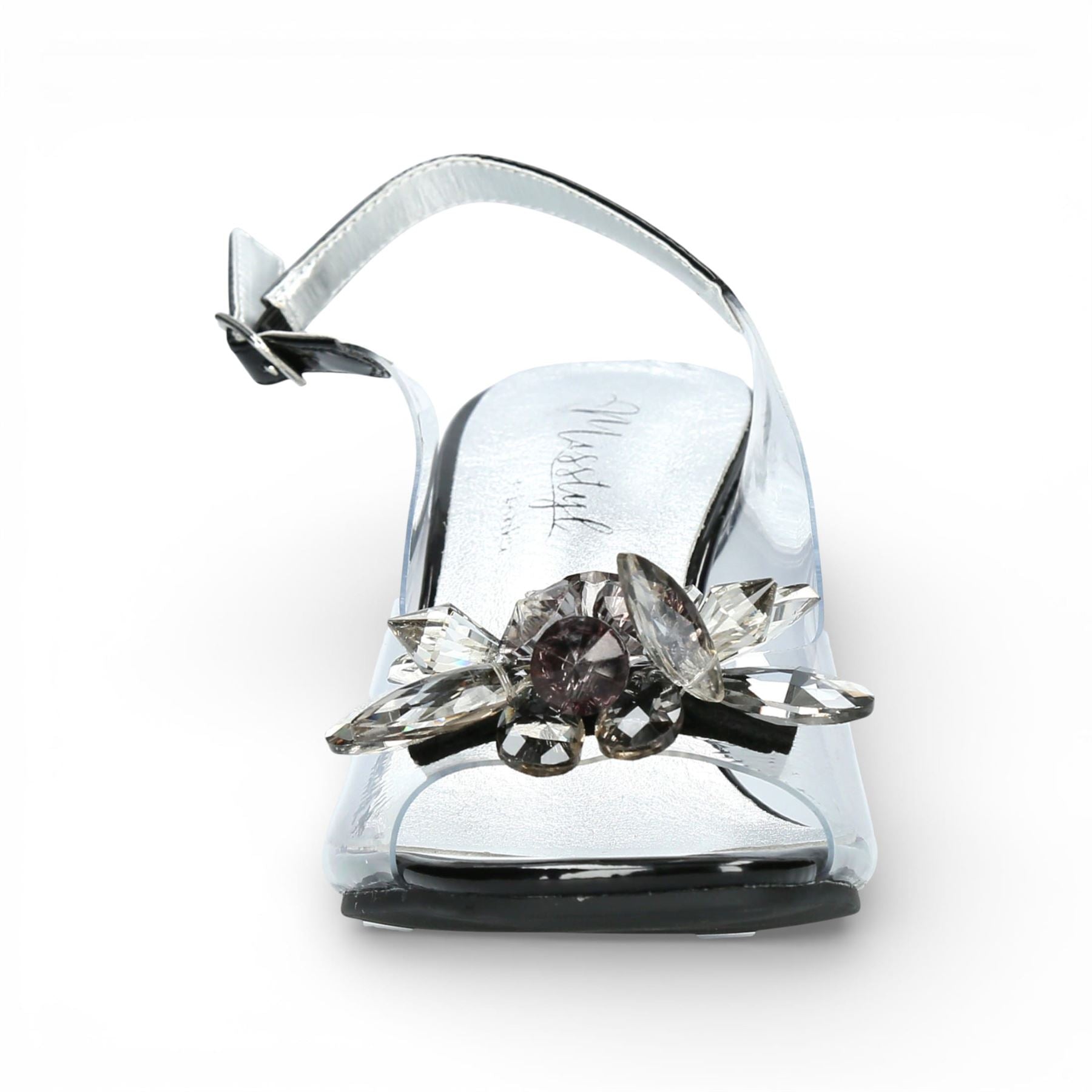 Laura Vita Women’s Mira 01 Clear Black Slip-On Cinderella Heel Sandals