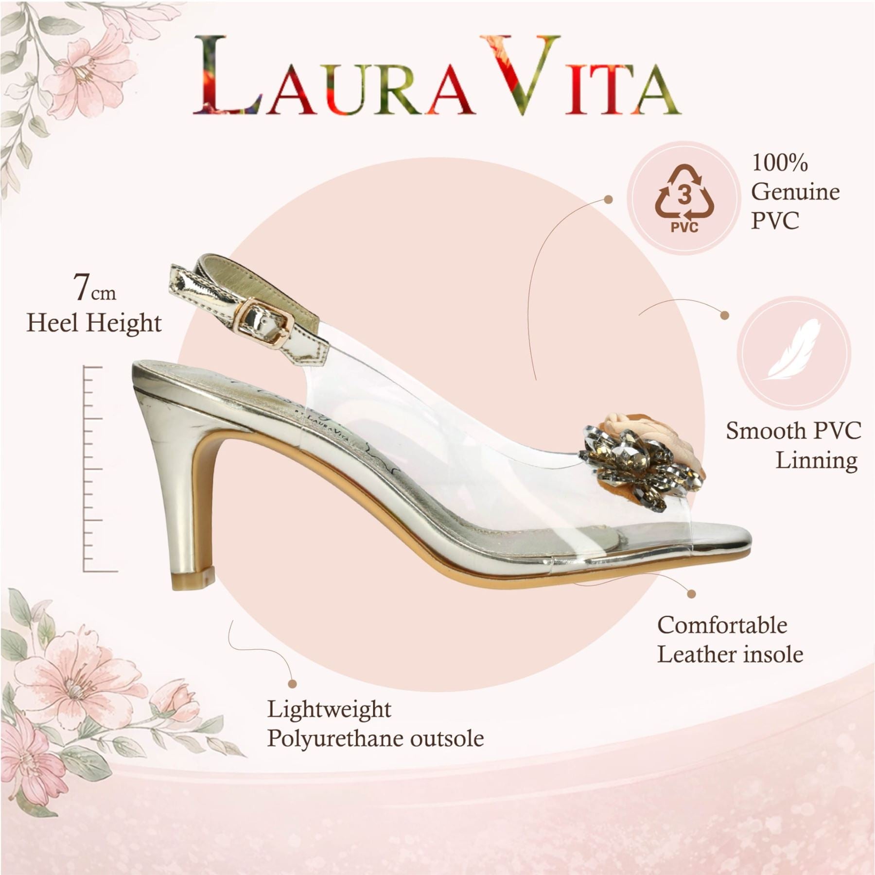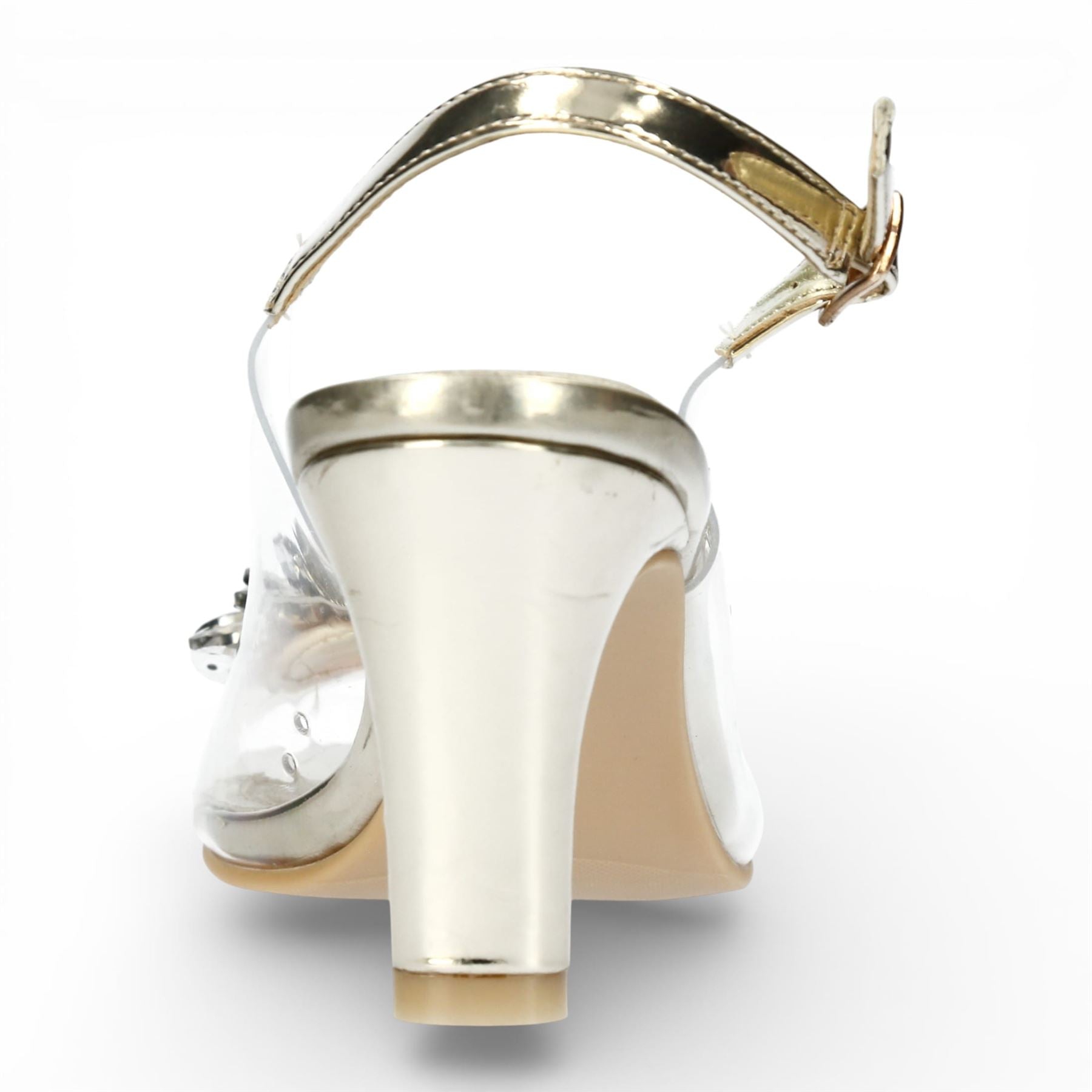 Laura Vita Women’s Mira 05 Clear Golden Slip-On Cinderella Heel Sandals