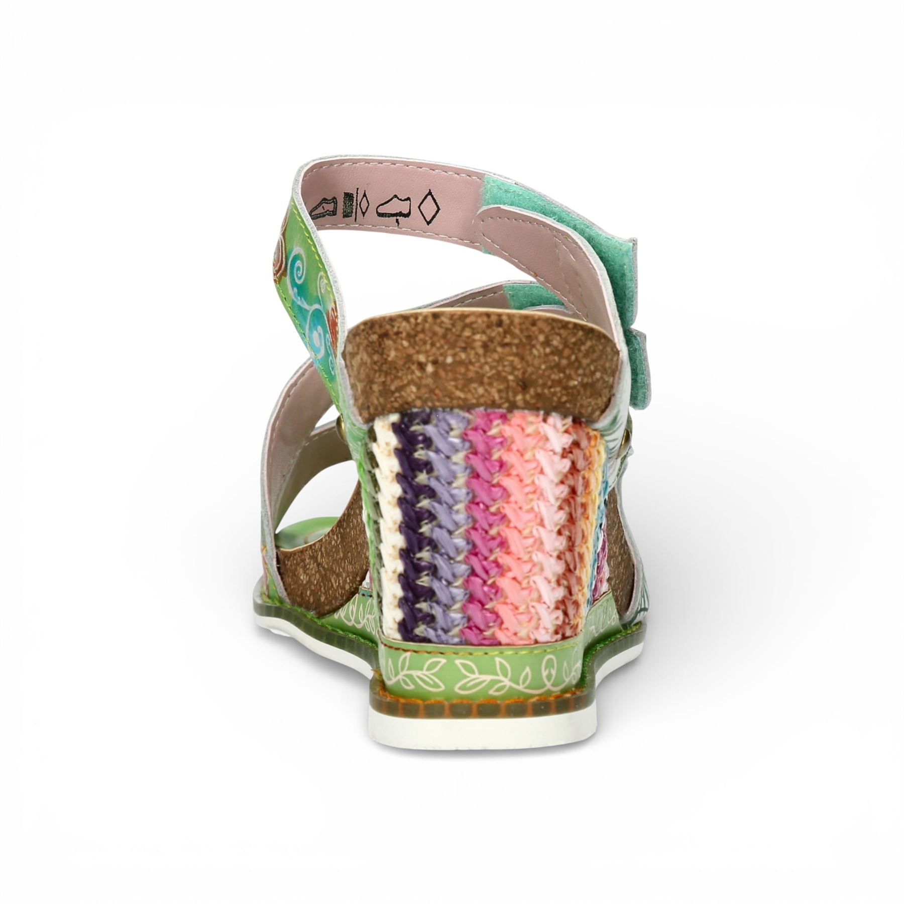 Laura Vita Women's Balade 32 Vert Green Floral Leather Wedge Espadrille Sandals