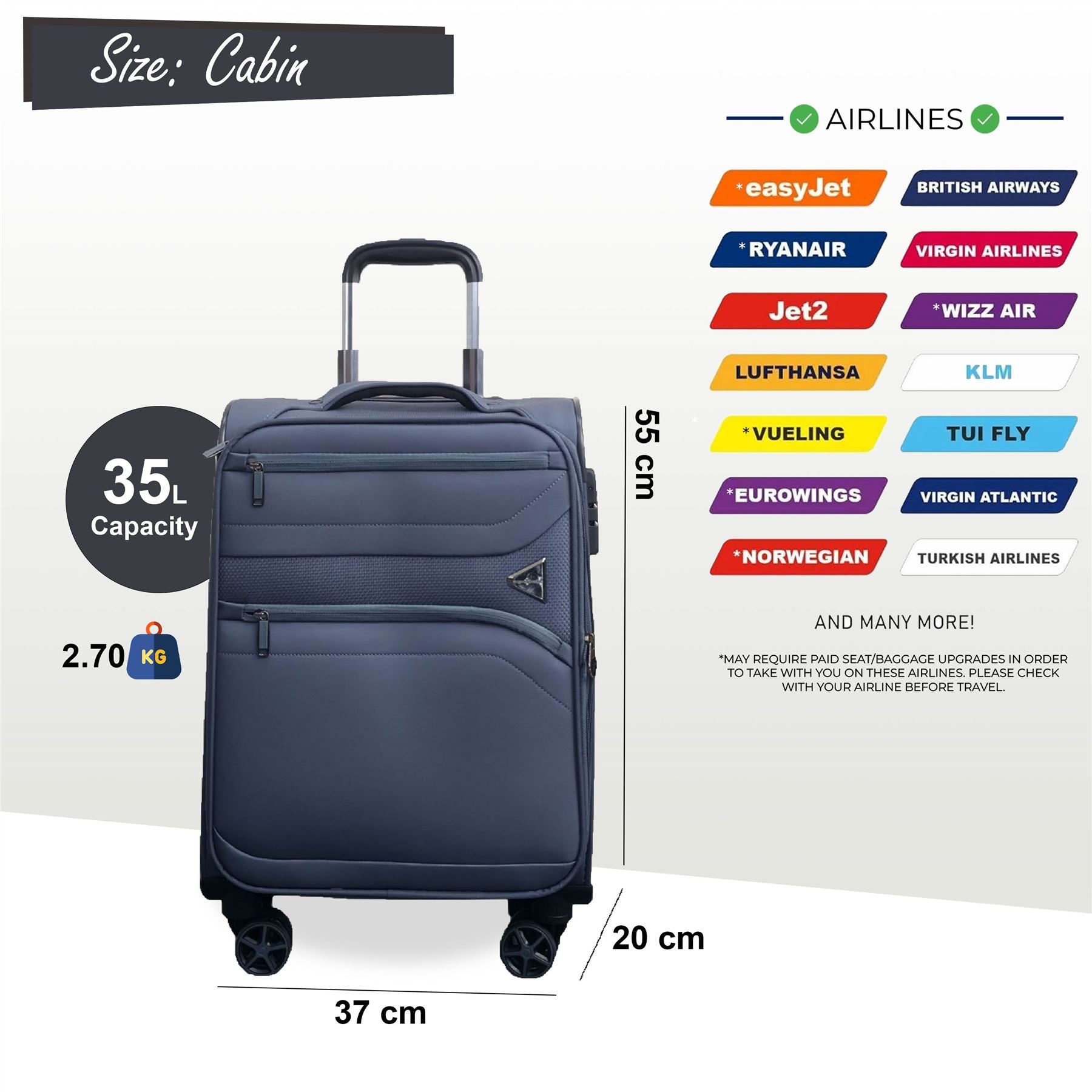 Lightweight Soft Grey Dual 4 Wheel Cabin Luggage Suitcase Set