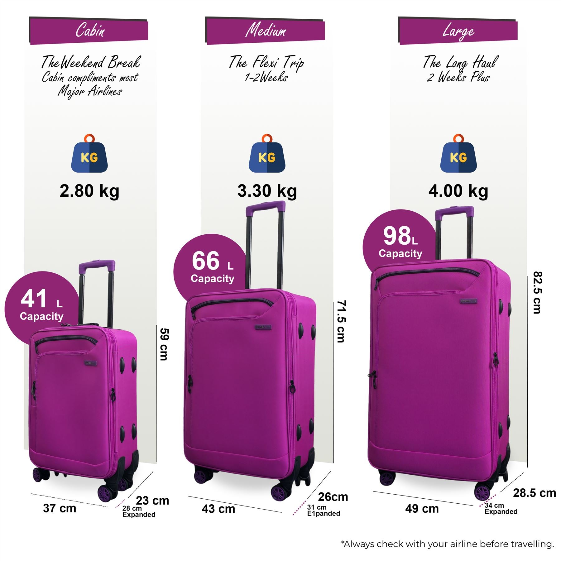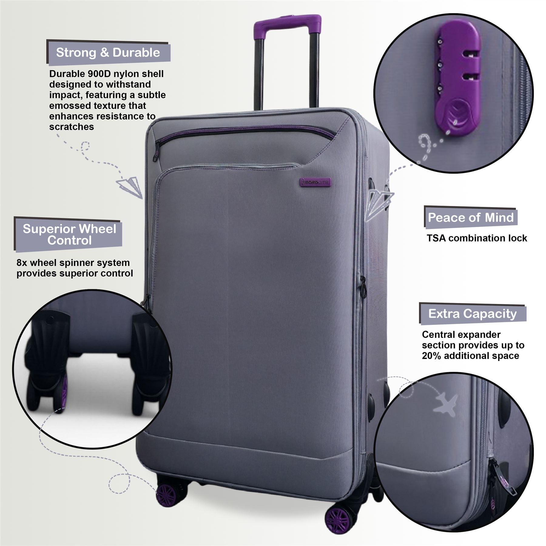 Lightweight Soft Shell 8 Wheels Luggage Travel Cabin Holiday Bags Suitcase Set