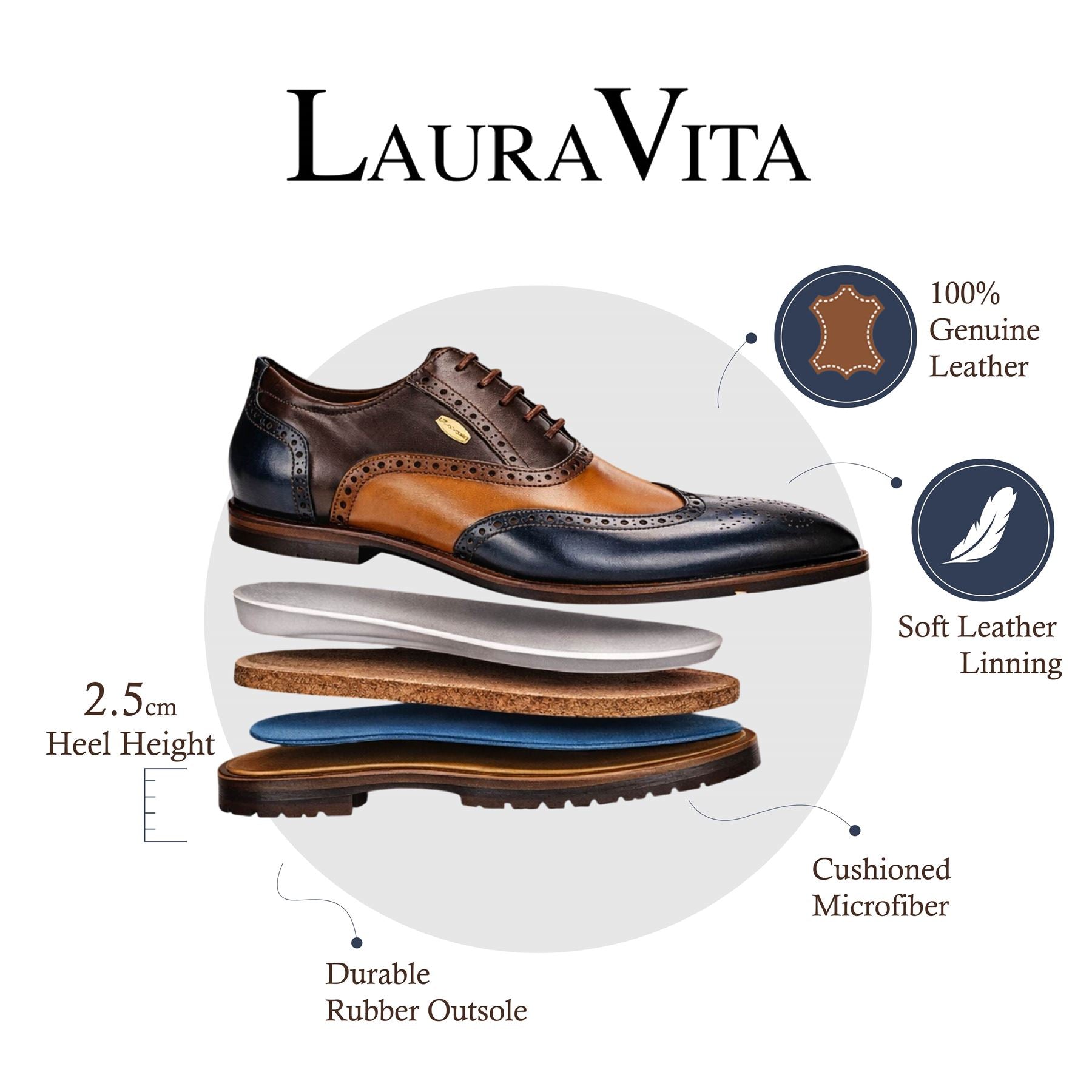 Lorenzo Conti Men's Blue Brown Leather Brogue Oxford DressShoes - Antonin 01