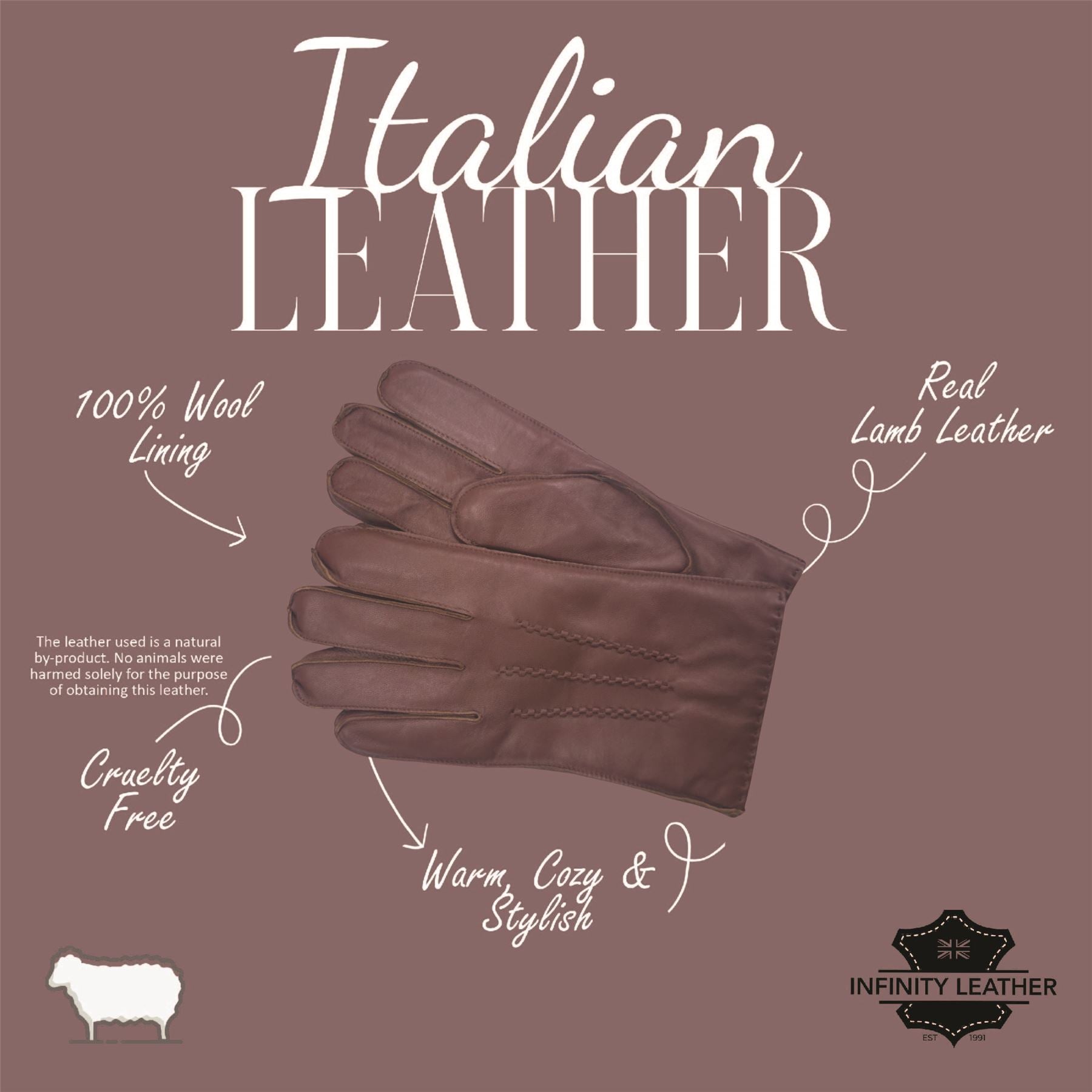 Men’s Chestnut Brown Italian Leather Warm Wool Lining Winter Stich Design Gloves - M-LGV-205