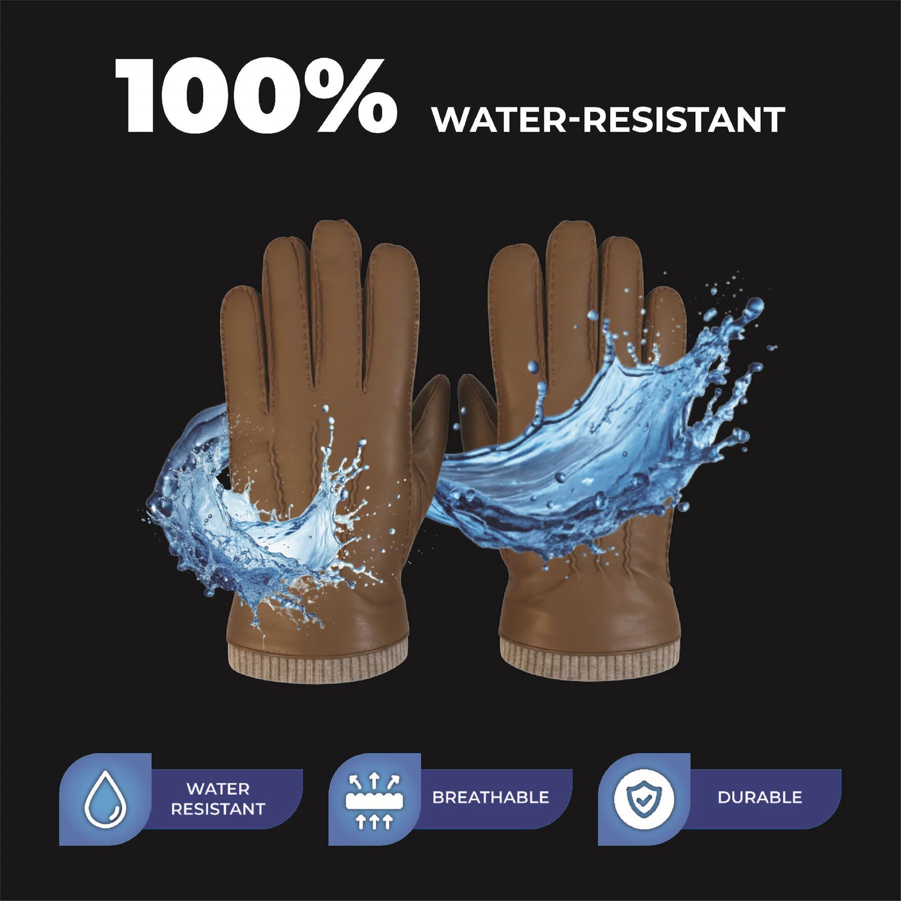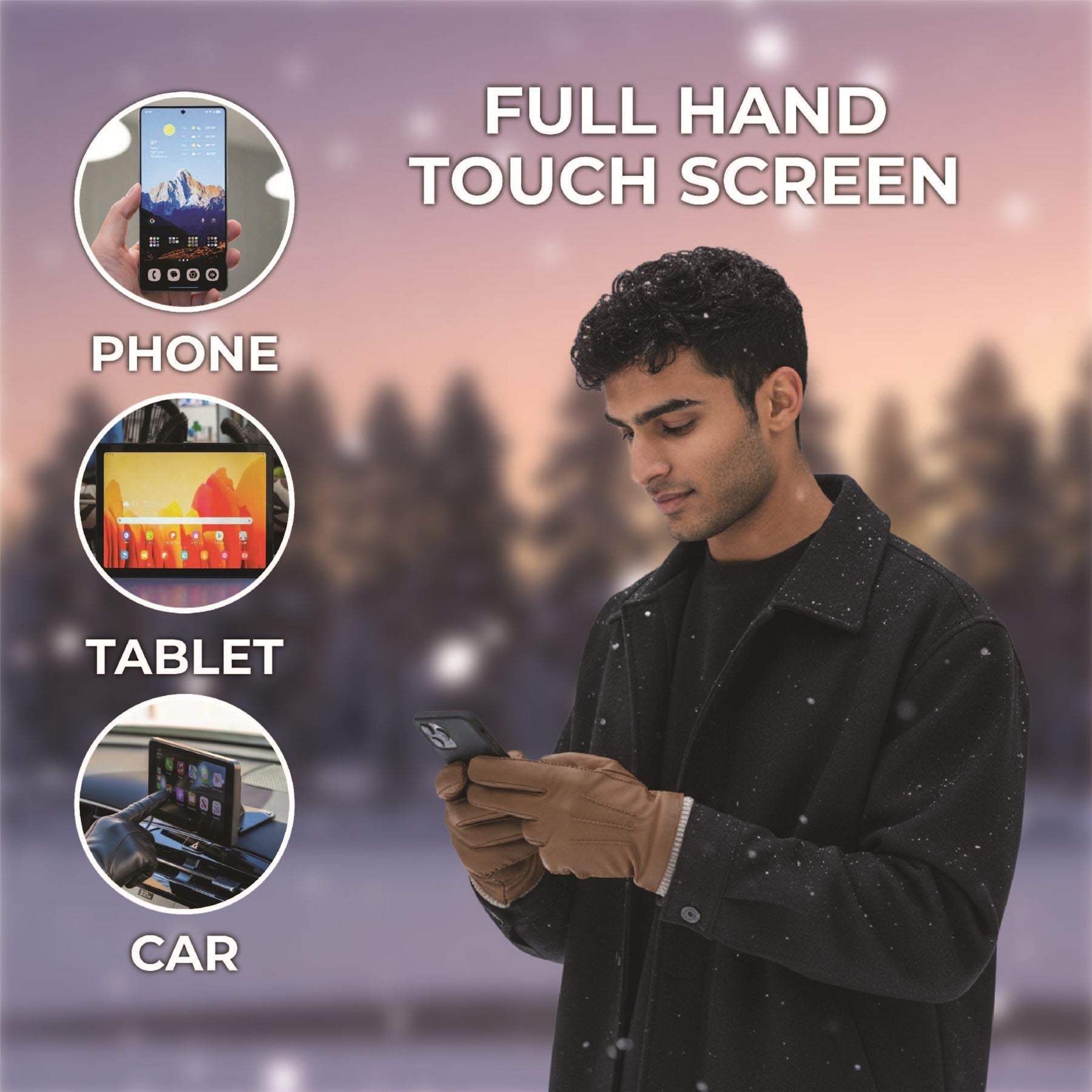 Men’s Tan Brown Italian Leather Warm Wool Lining Winter Gloves - M-LGV-405