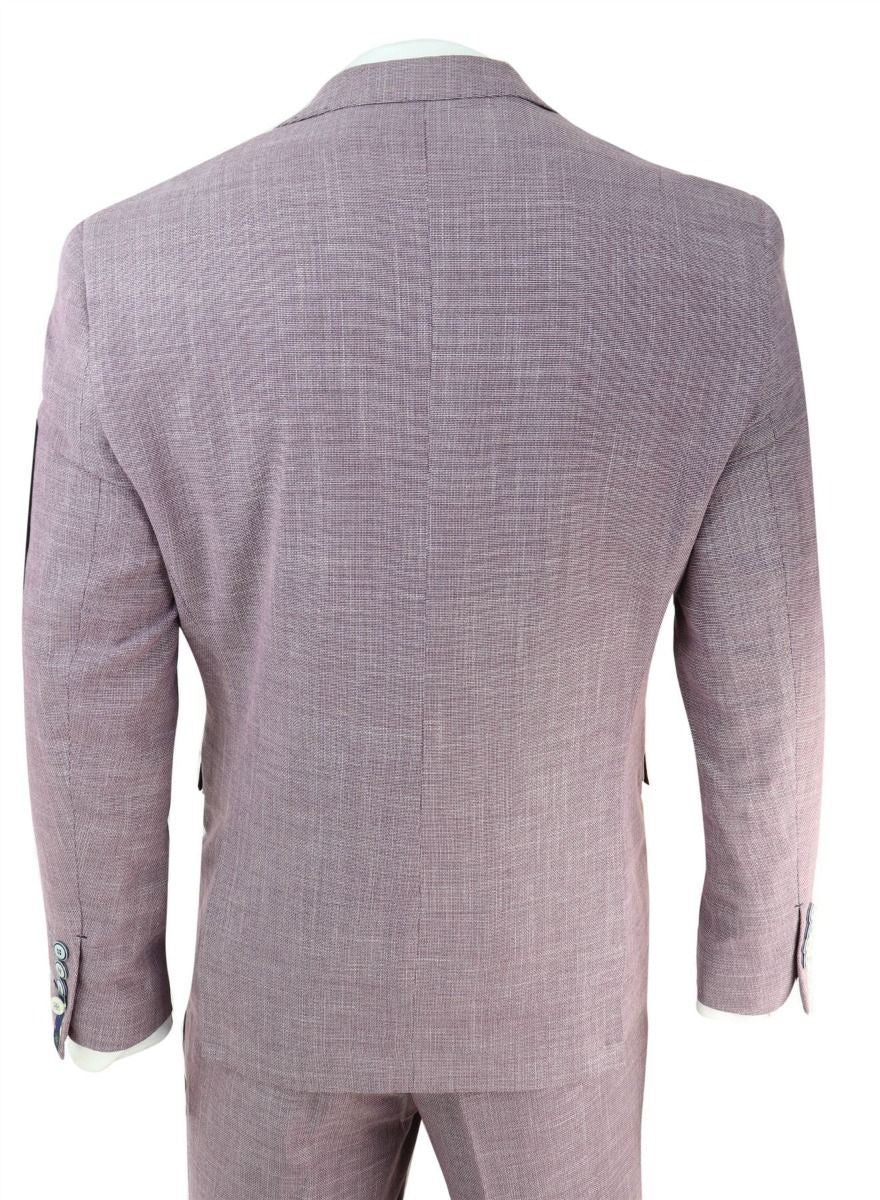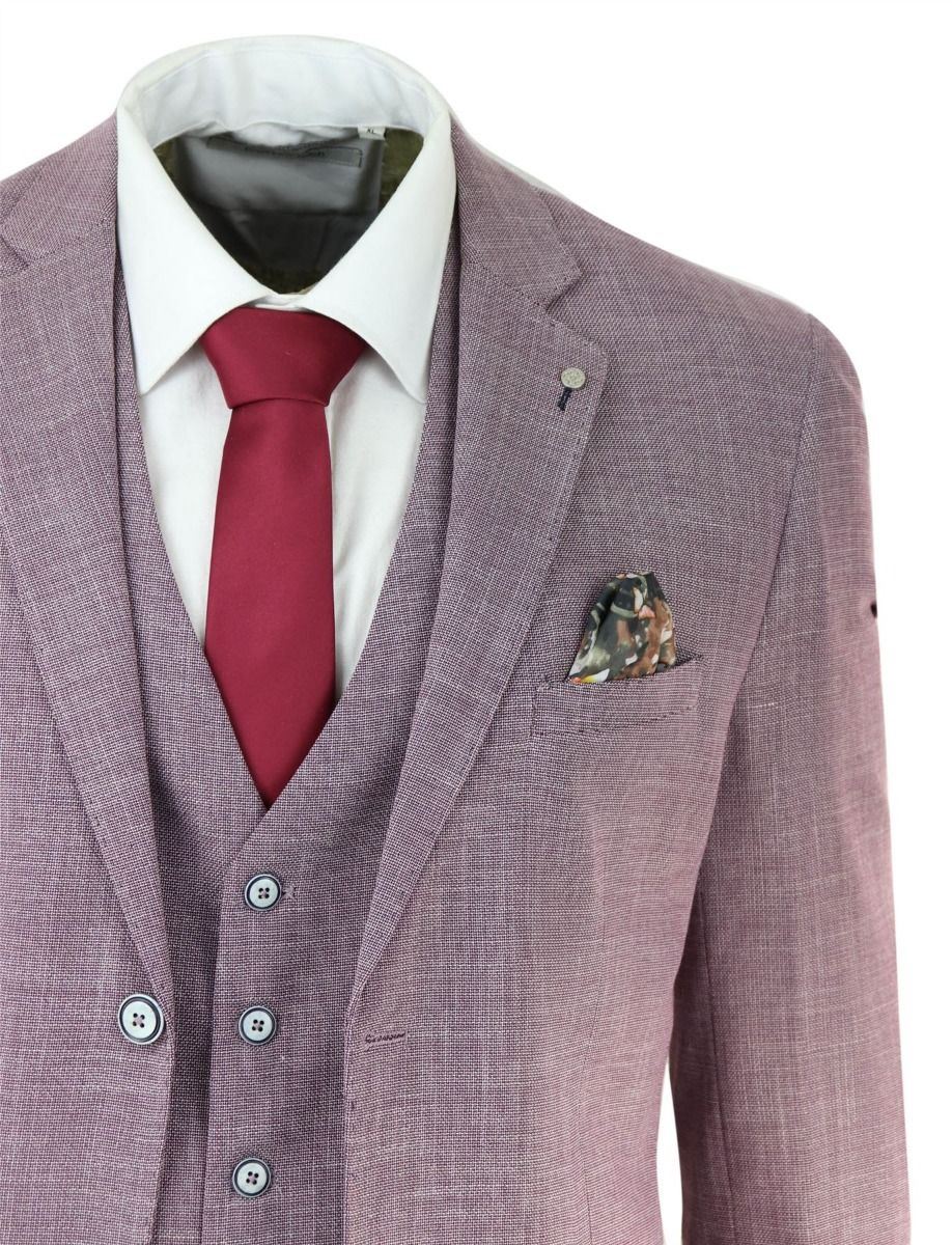 Mens 3 Piece Blush Pink Linen Summer Spring Classic Suit