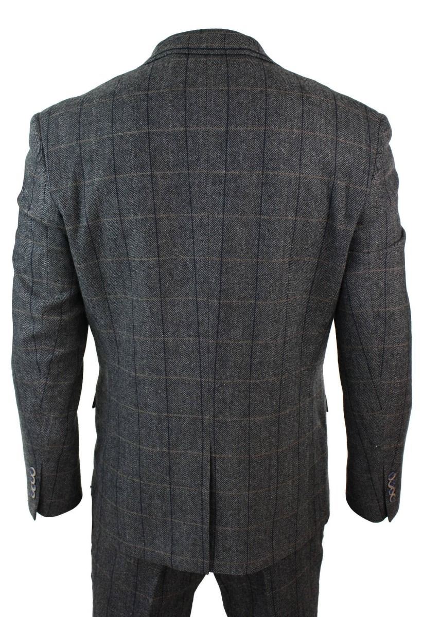 Mens 3 Piece Charcoal Grey Check Tweed Herringbone Vintage Classic Suit