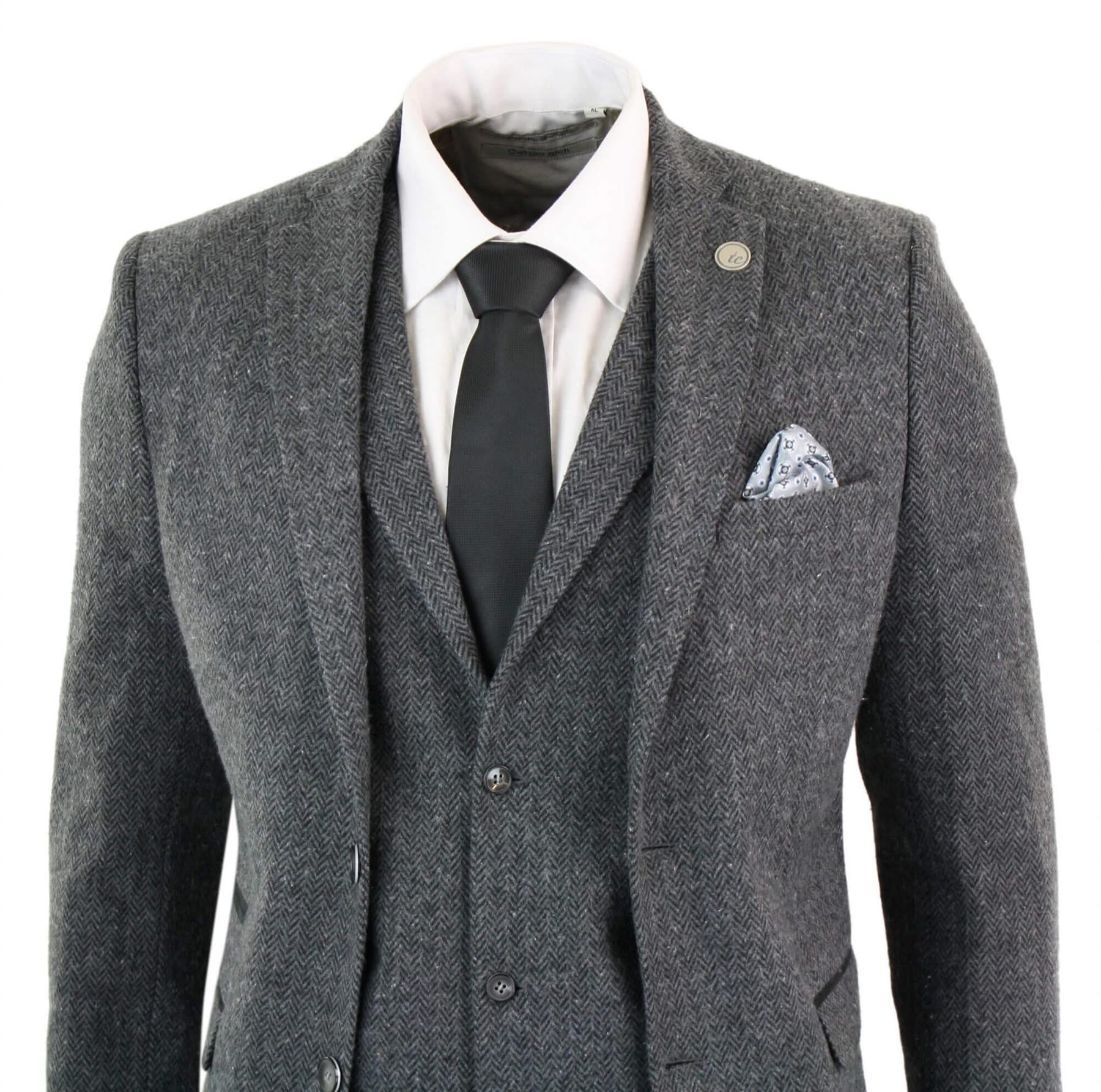Sleek, stylish and sophisticated, look the part with this premium 3 piece charcoal grey tweed suit. A vintage design worn by the Shelby brothers from the Peaky Blinders gang, this retro tweed peaky blinders suit has been tailored from a luxury Italian wool blend, giving a beautifully tailored fit, between slim and regular, that is lightweight and comfortable. Complete with blazer, waistcoat, and trousers, this suit will have you looking sharp and suave wherever you go, no matter the occasion or event.
