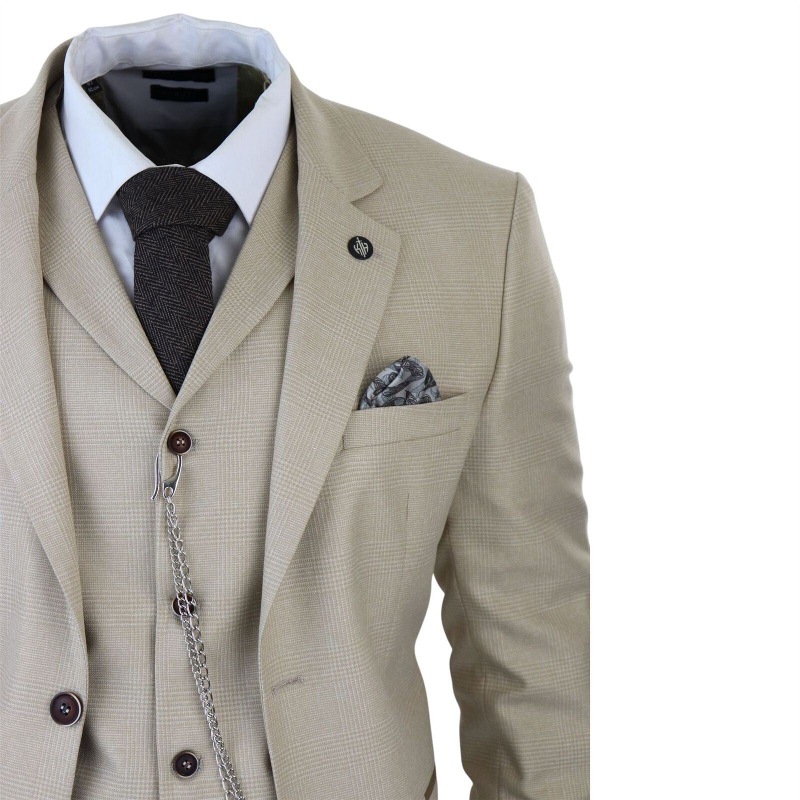 Men's 3 Piece Cream Prince Of Wales Check Suit