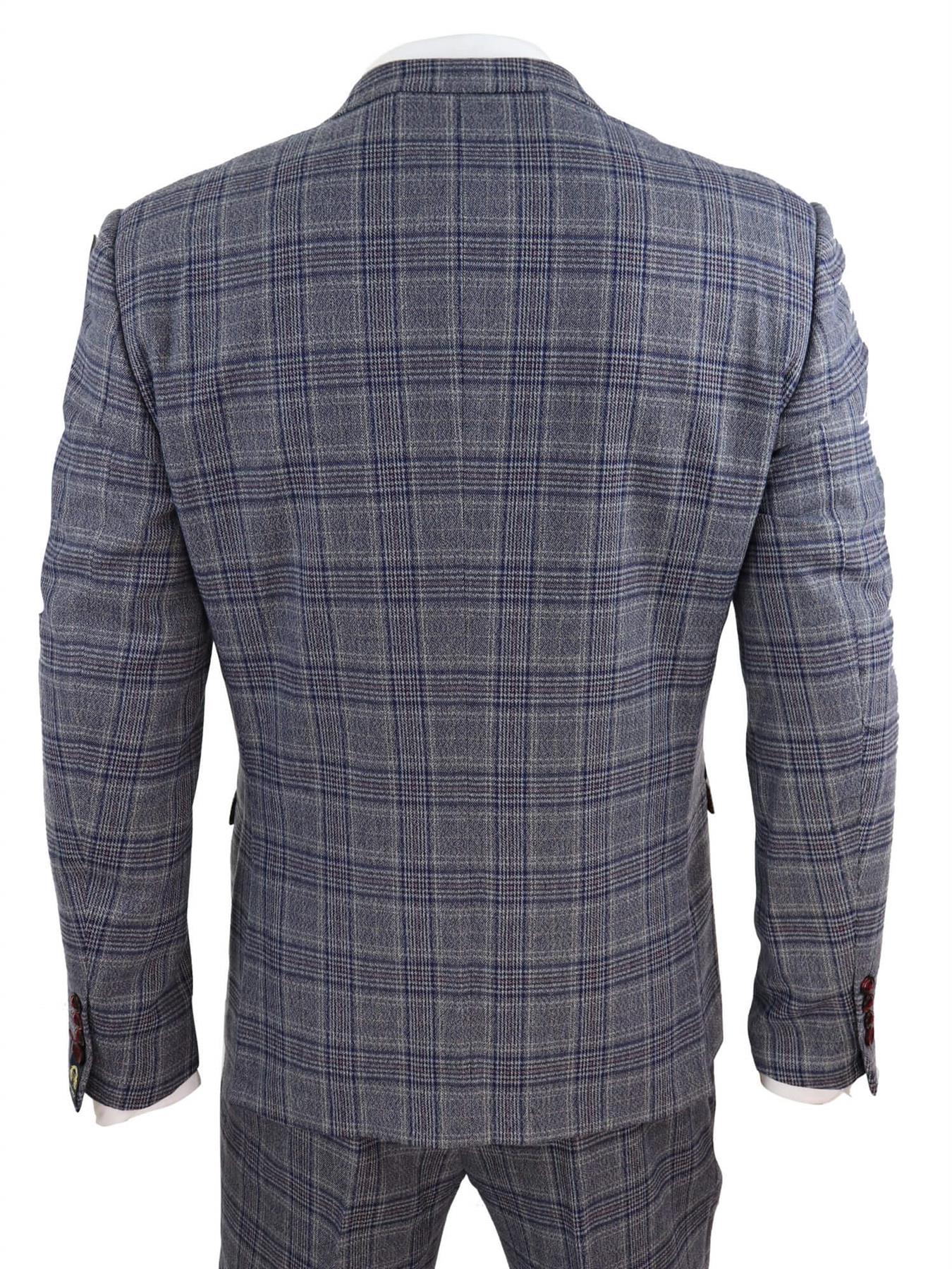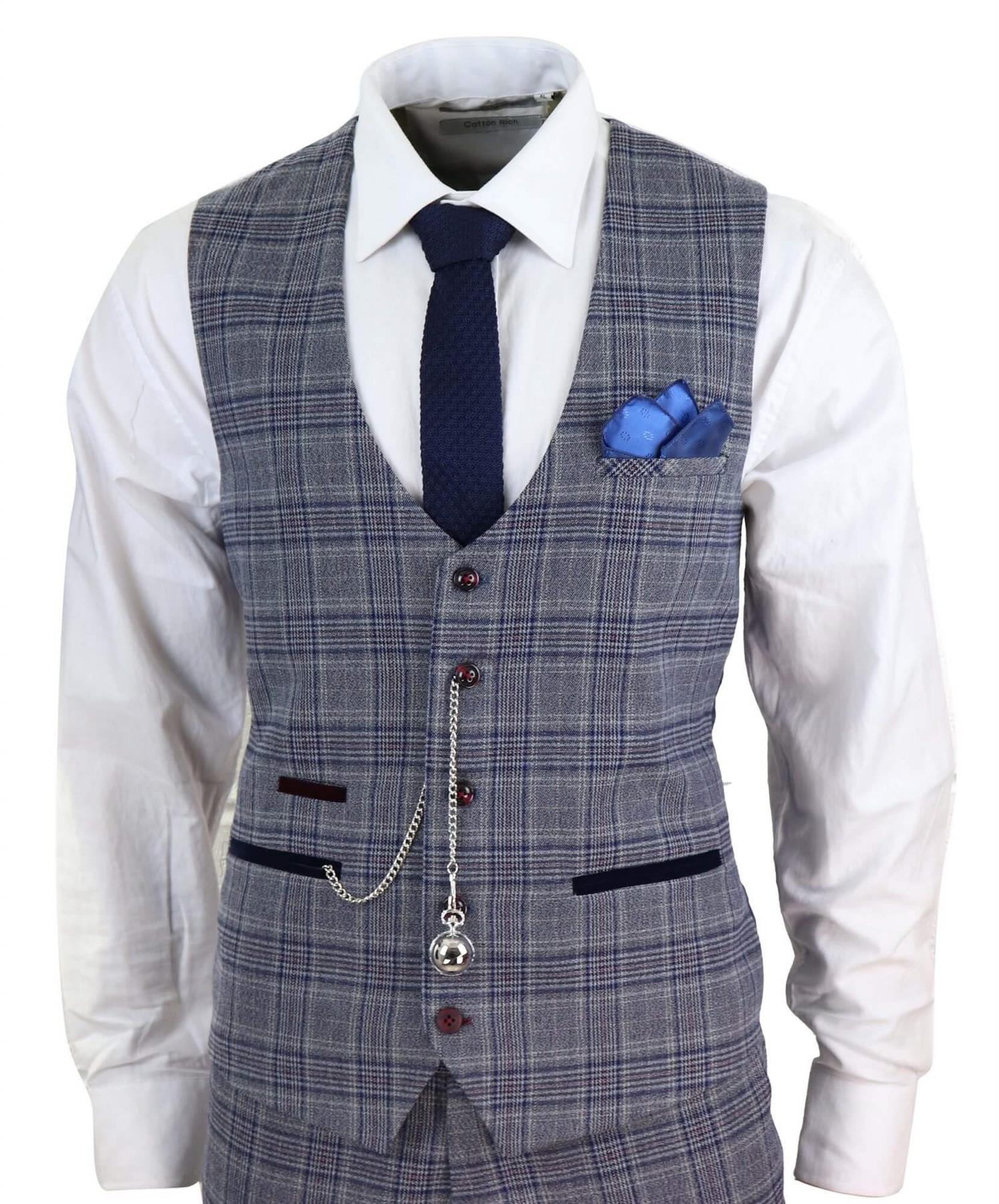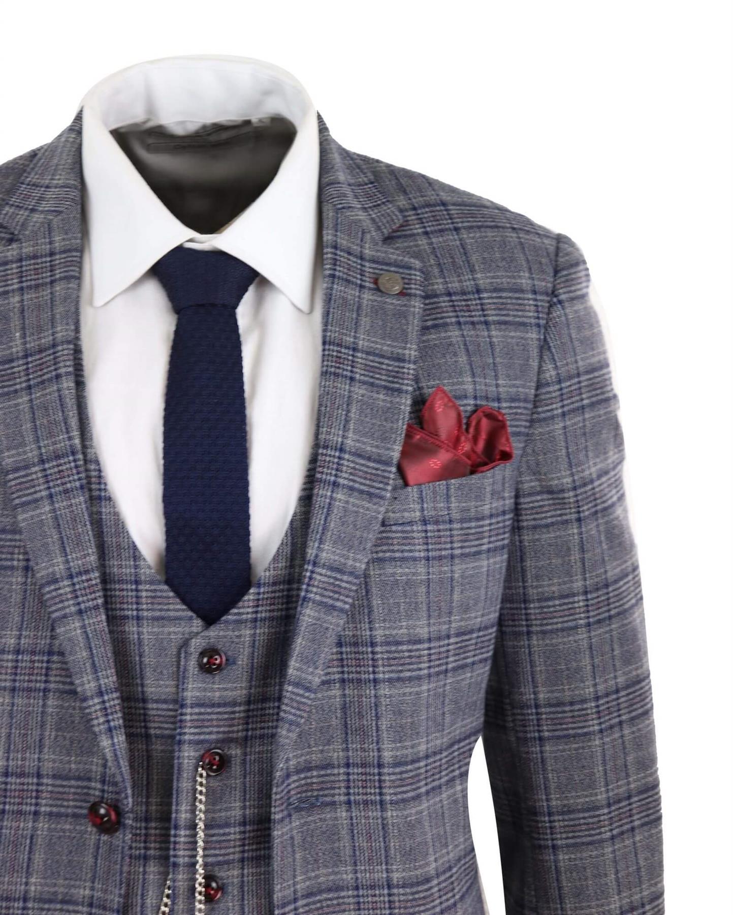 Mens 3 Piece Grey Herringbone Tweed Check Suit