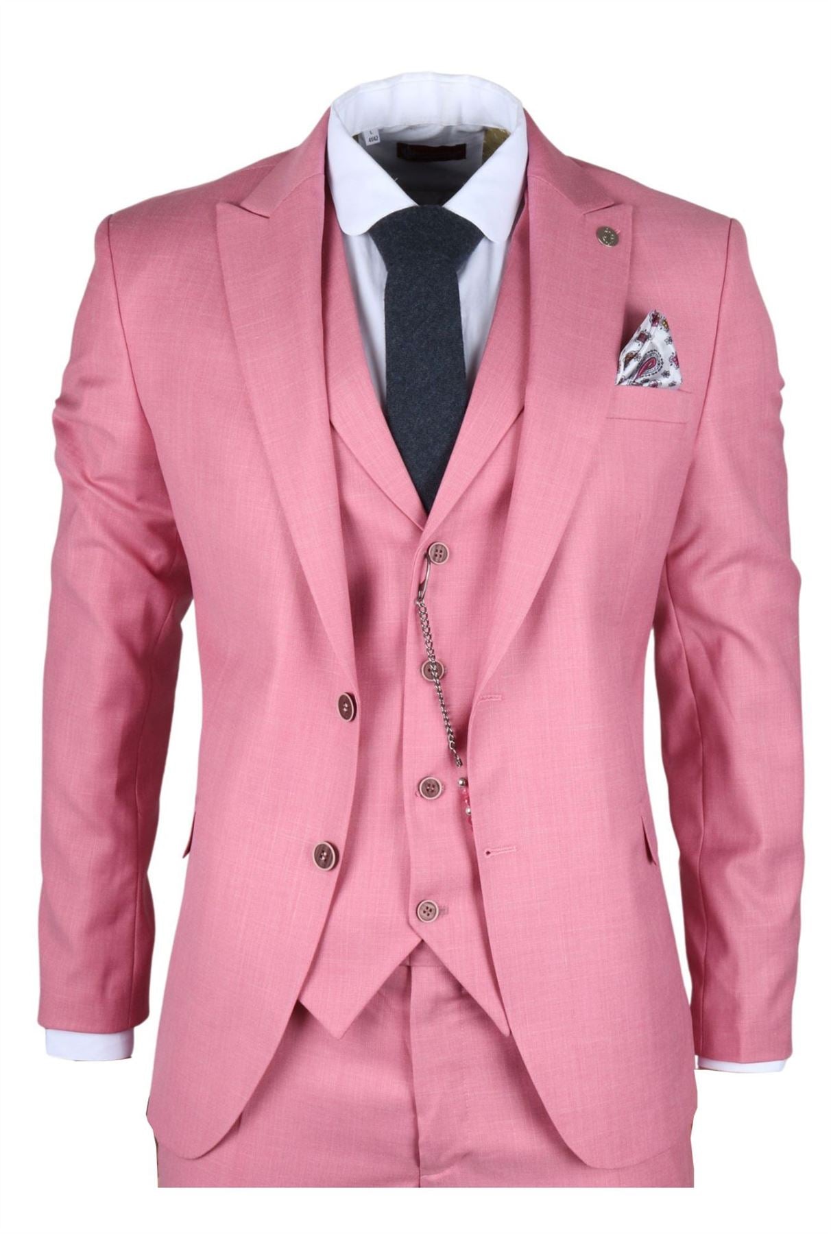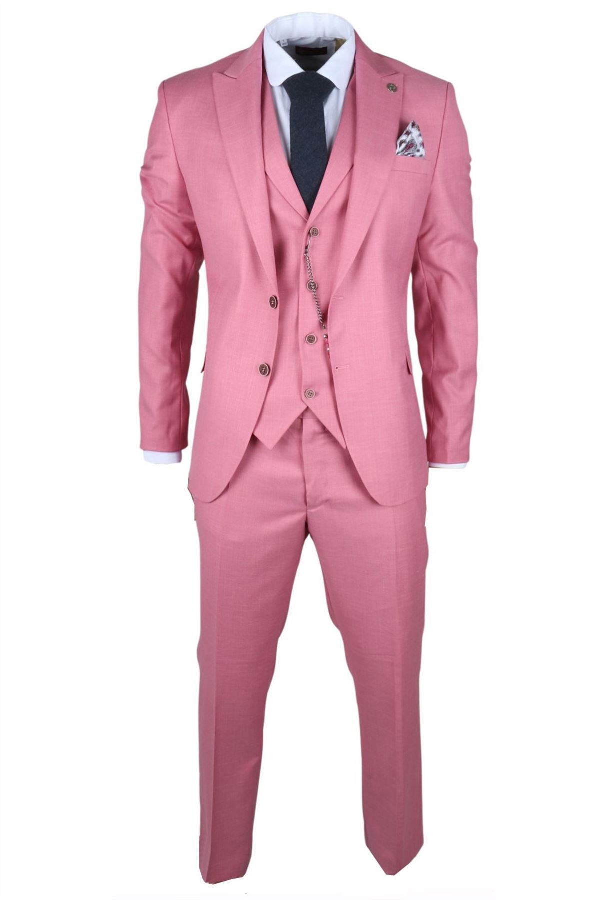 Men's 3 Piece Pink Tailored Fit Party Suit Race Day