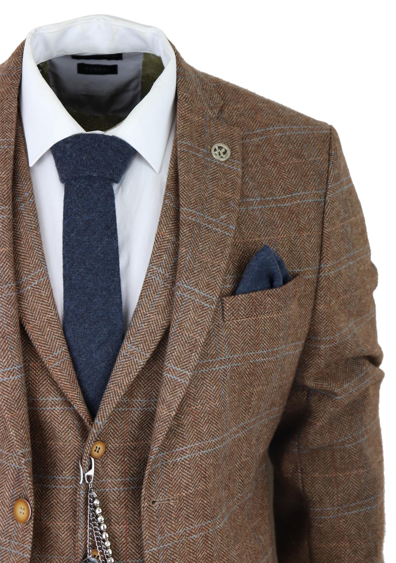Sharp, sleek and sophisticated, look the part with this premium 3 piece Oak Brown tweed suit, that features a slim fit cut, with a closer fit across the chest and narrower tailored trousers. the two-button jacket hangs beautifully and has a half canvas construction that moulds to your body shape the more you wear it. Contrasting flap pockets, buttoned cuffs and a single back vent lend the suit a classic touch of refinement.