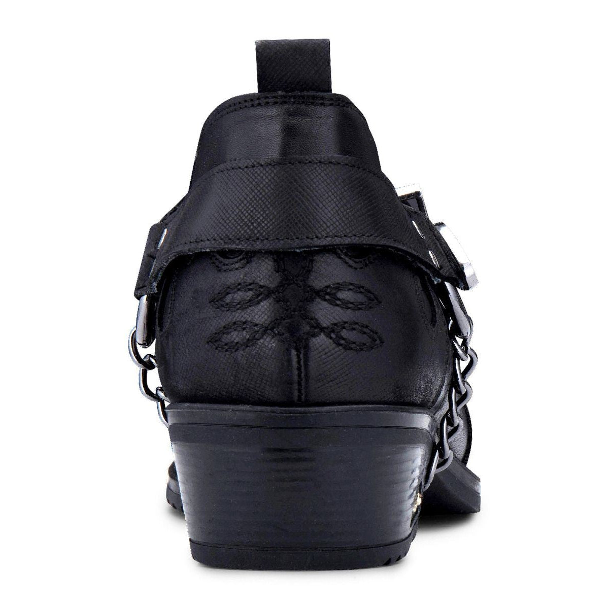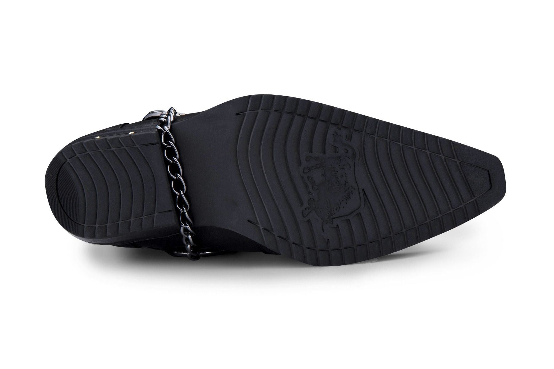 Men's Black Leather Metal Chain Winklepicker Cowboy Boots