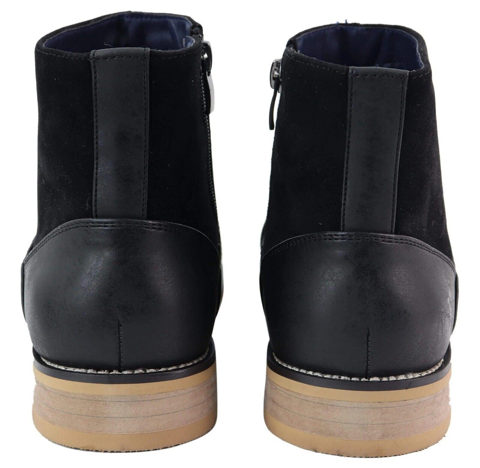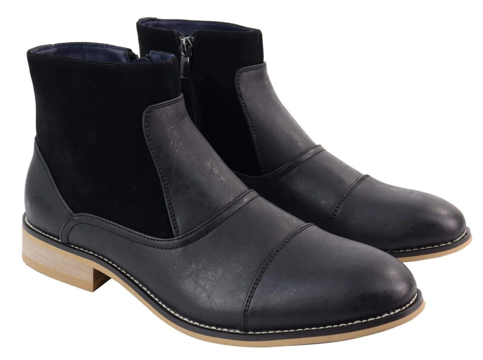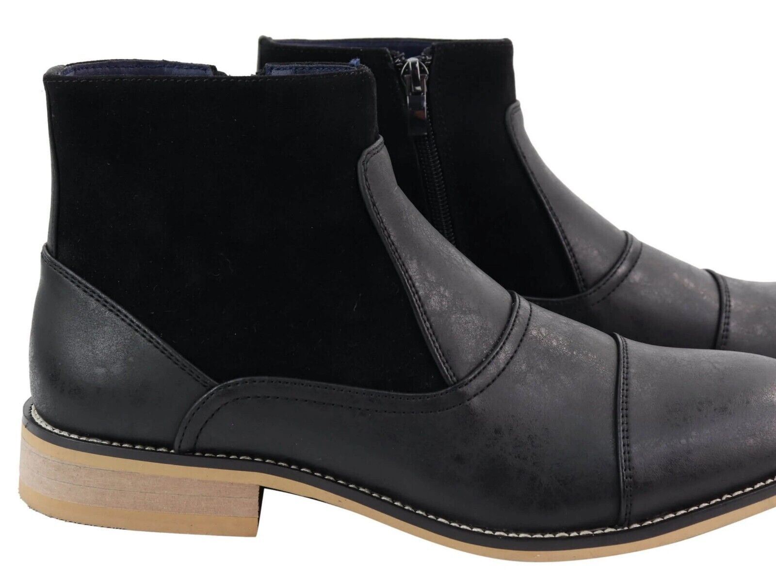 Mens Black Leather Suede Zip Up Chelsea Boots