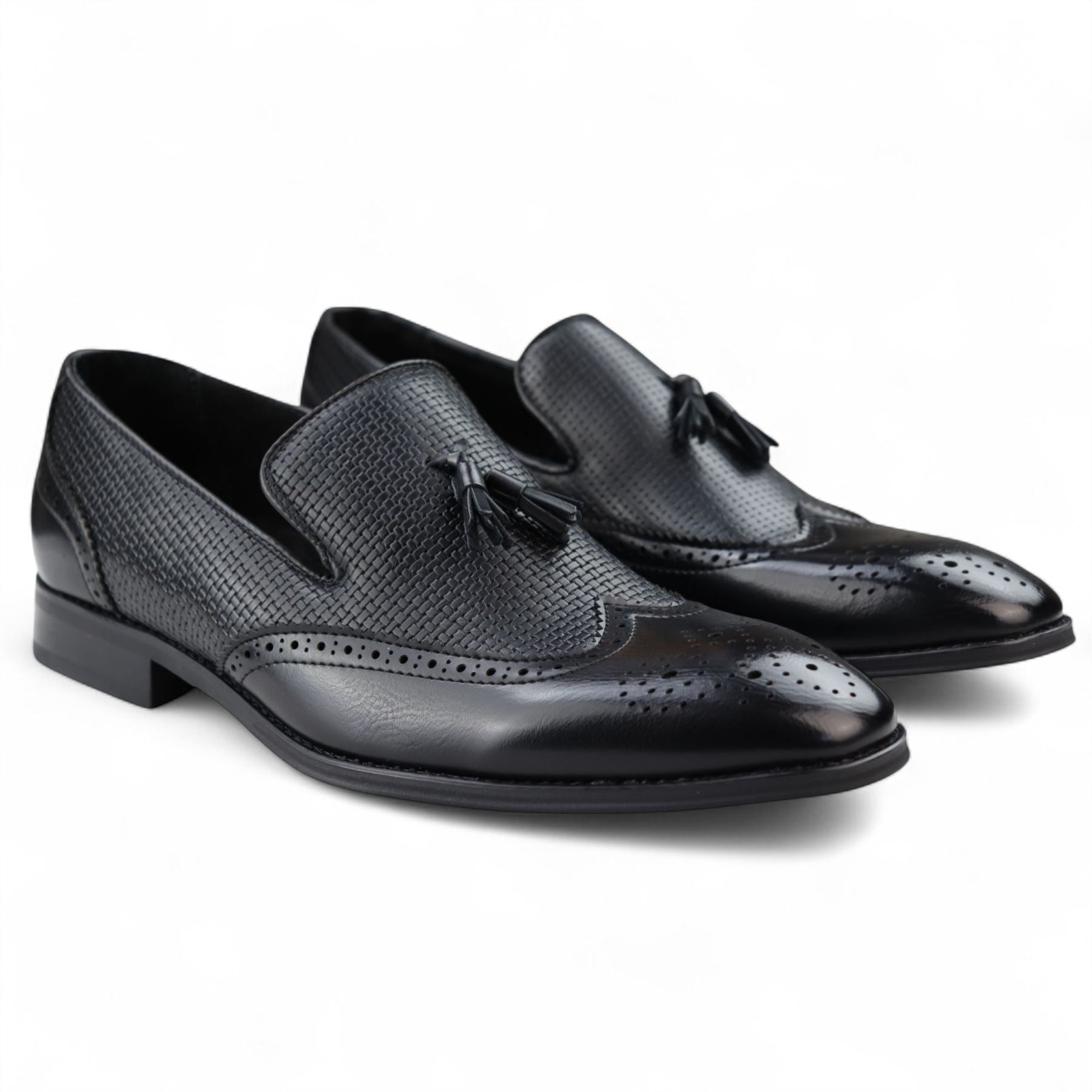 Men's Black Tassel Moccasin Loafers Smart Slip-On Dress Shoes