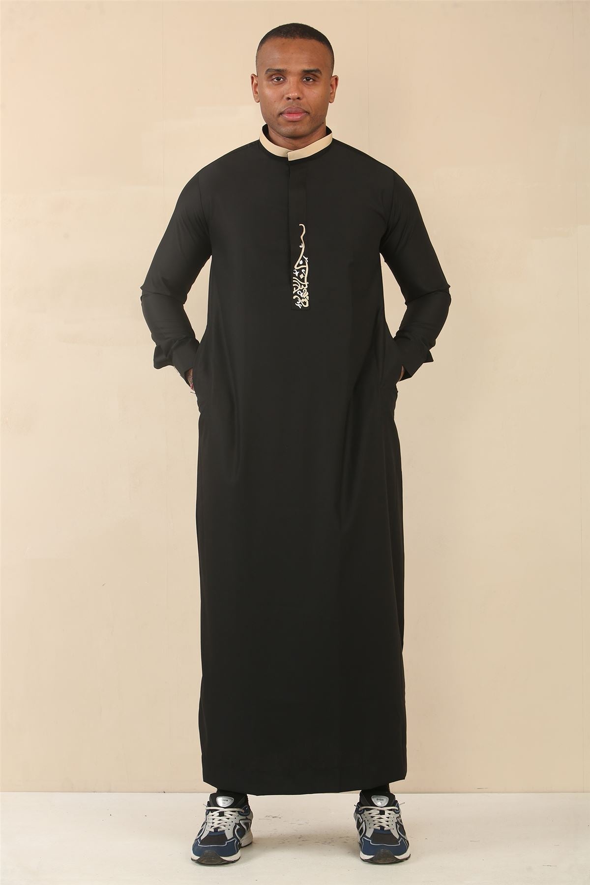 Men's Black Thobe Arab Saudi Emirati Islamic Clothing Jubba Robe
