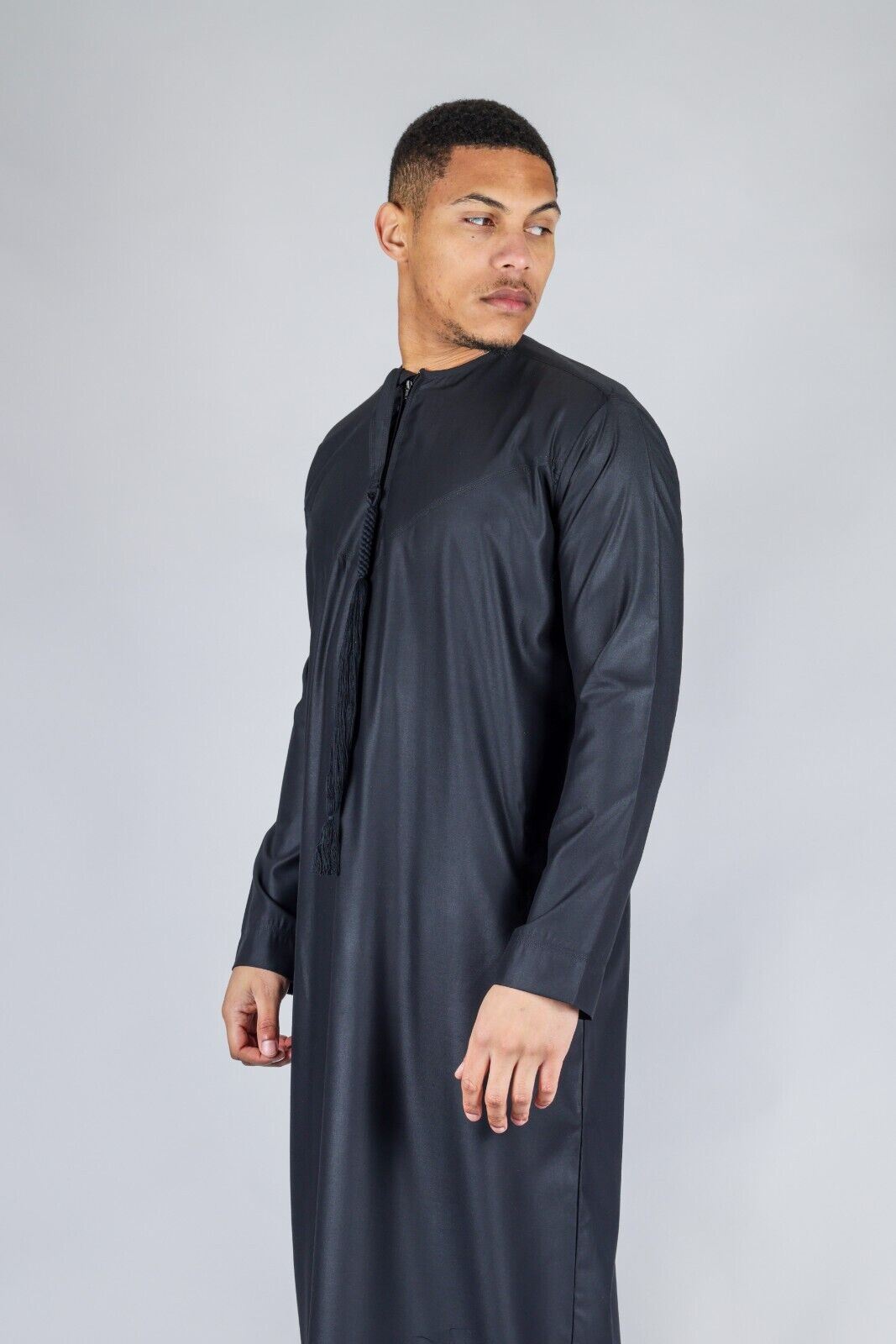 Men's Black Thobe Emirati Islamic Jubba Robe Eid Tassel Regular Fit