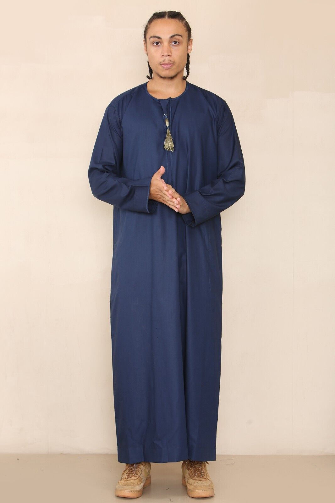 Mens Blue Thobe Jubba Saudi Islamic Arab Eid Emirati Kaftan Jubbah Tassel Robes