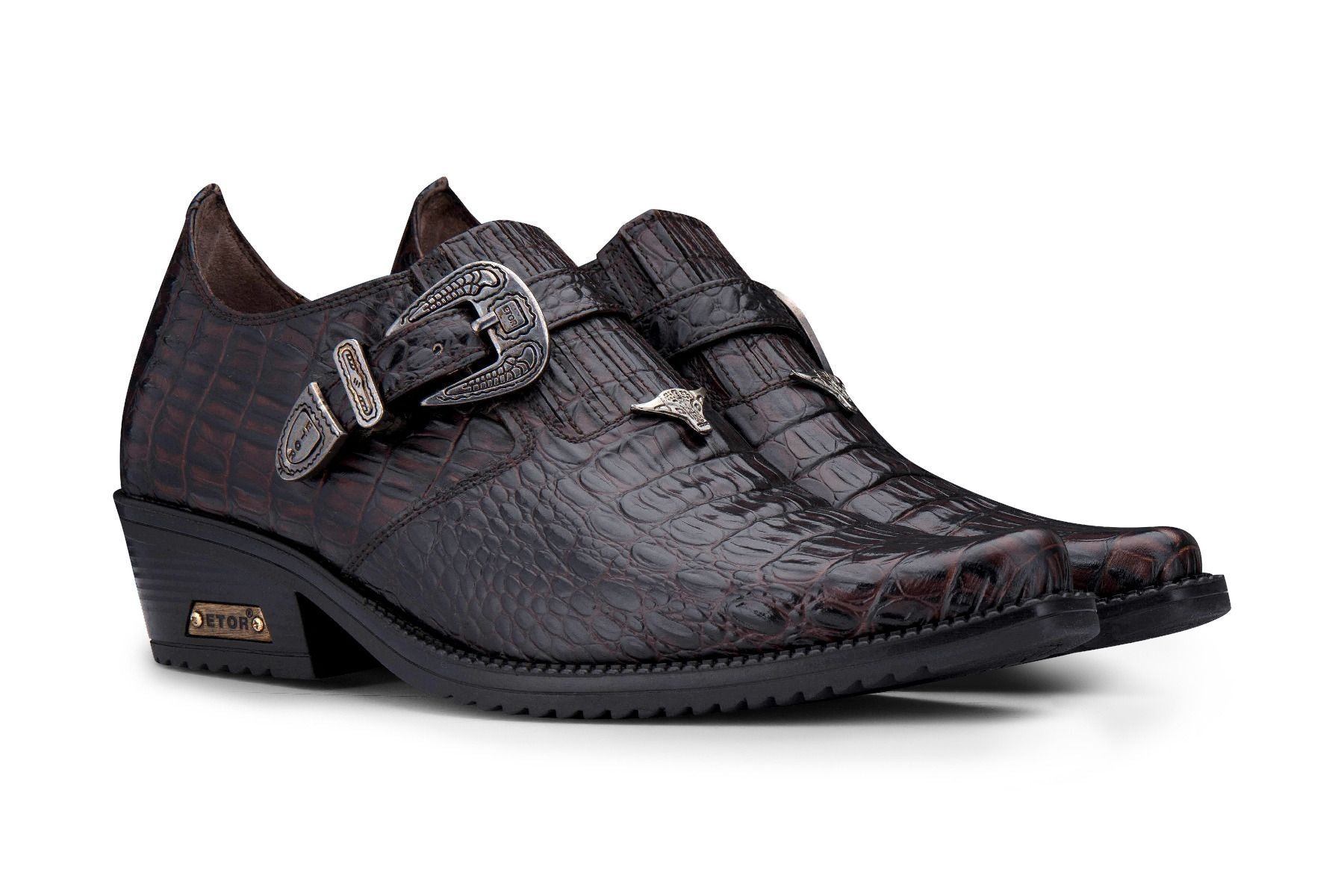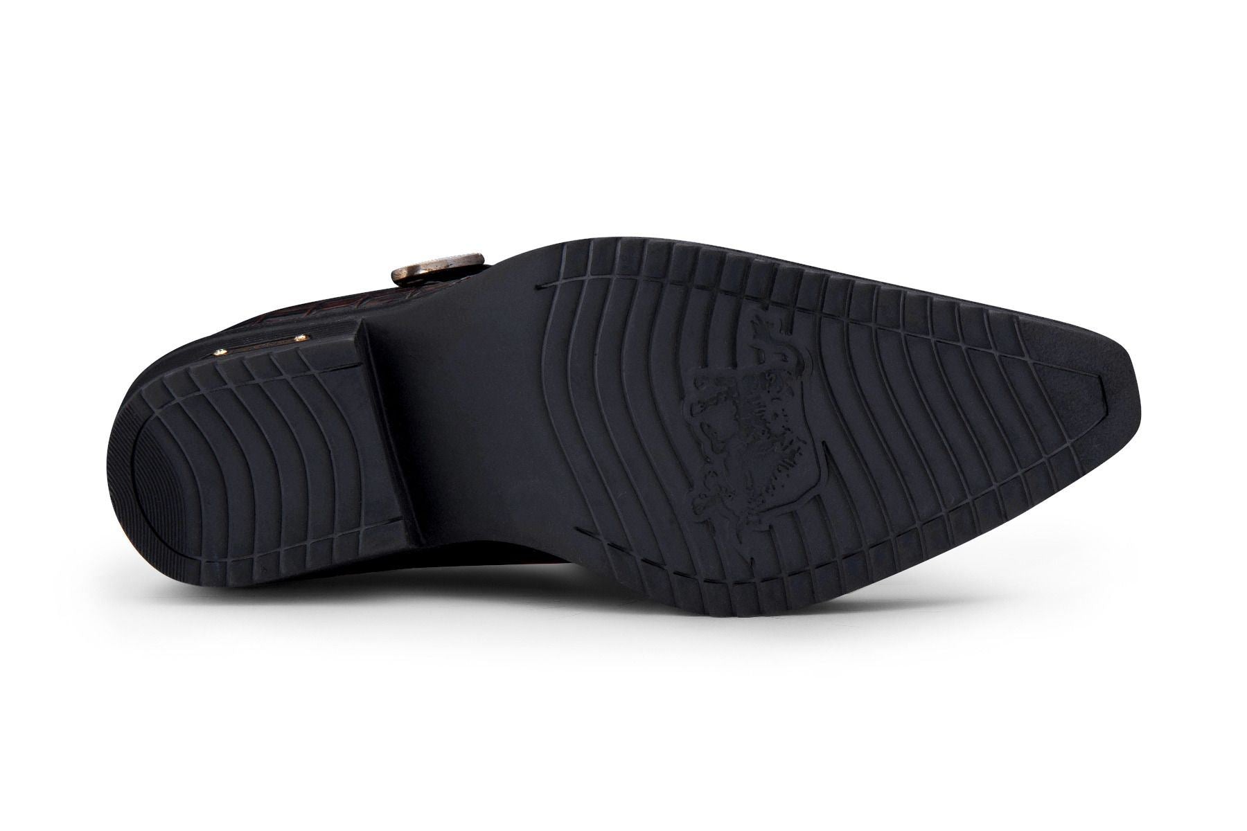 Men's Brown Croc Leather Cuban Heel Winklepicker Boots Tc