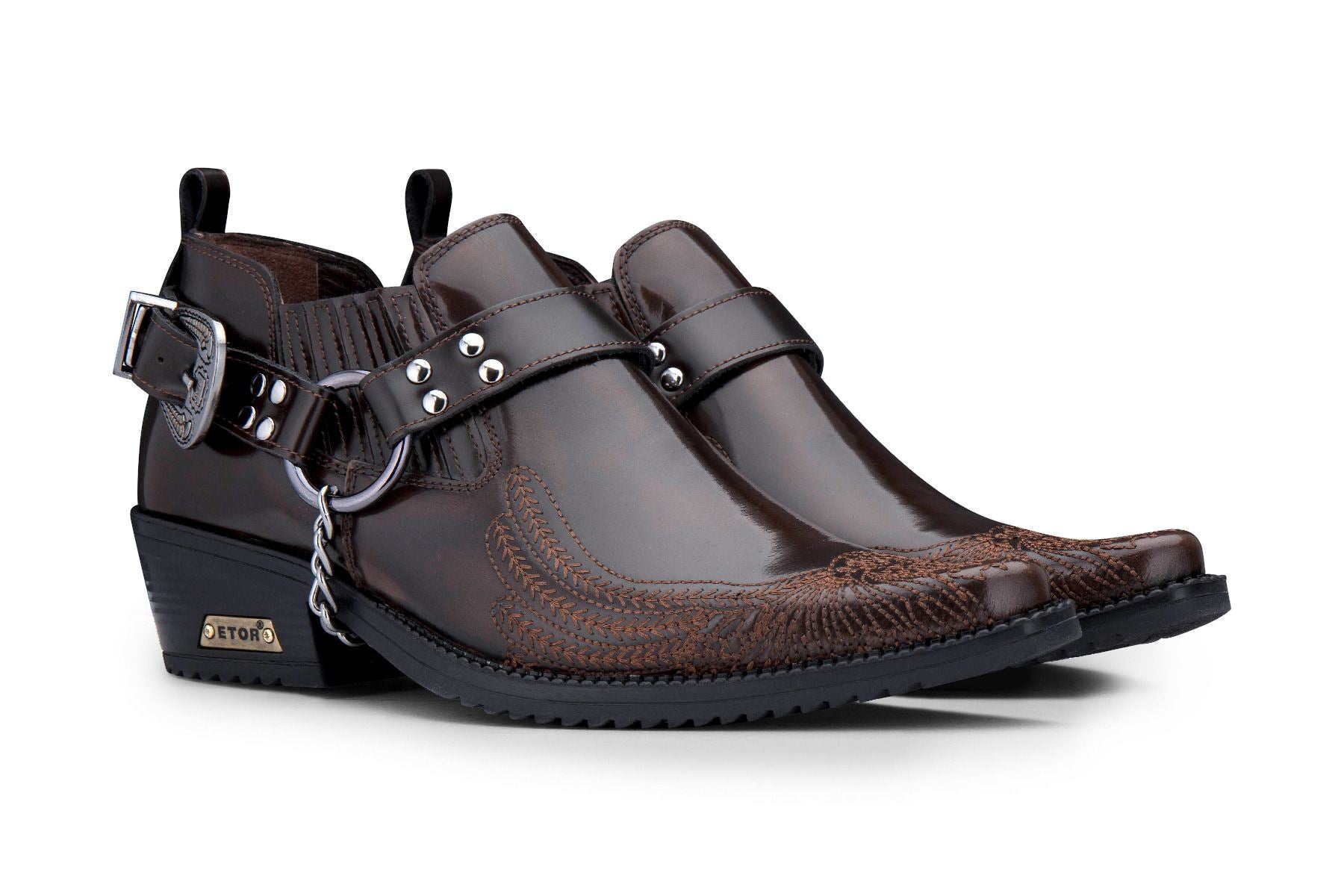 Men's Brown Eagle Cuban Heel Leather Cowboy Boots