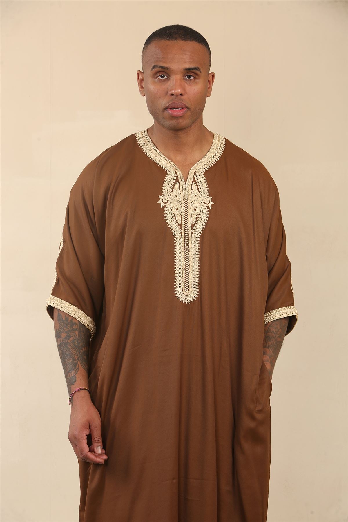 Men's Brown Moroccan Thobe Jubba Robe Eid Djellaba Gandoura